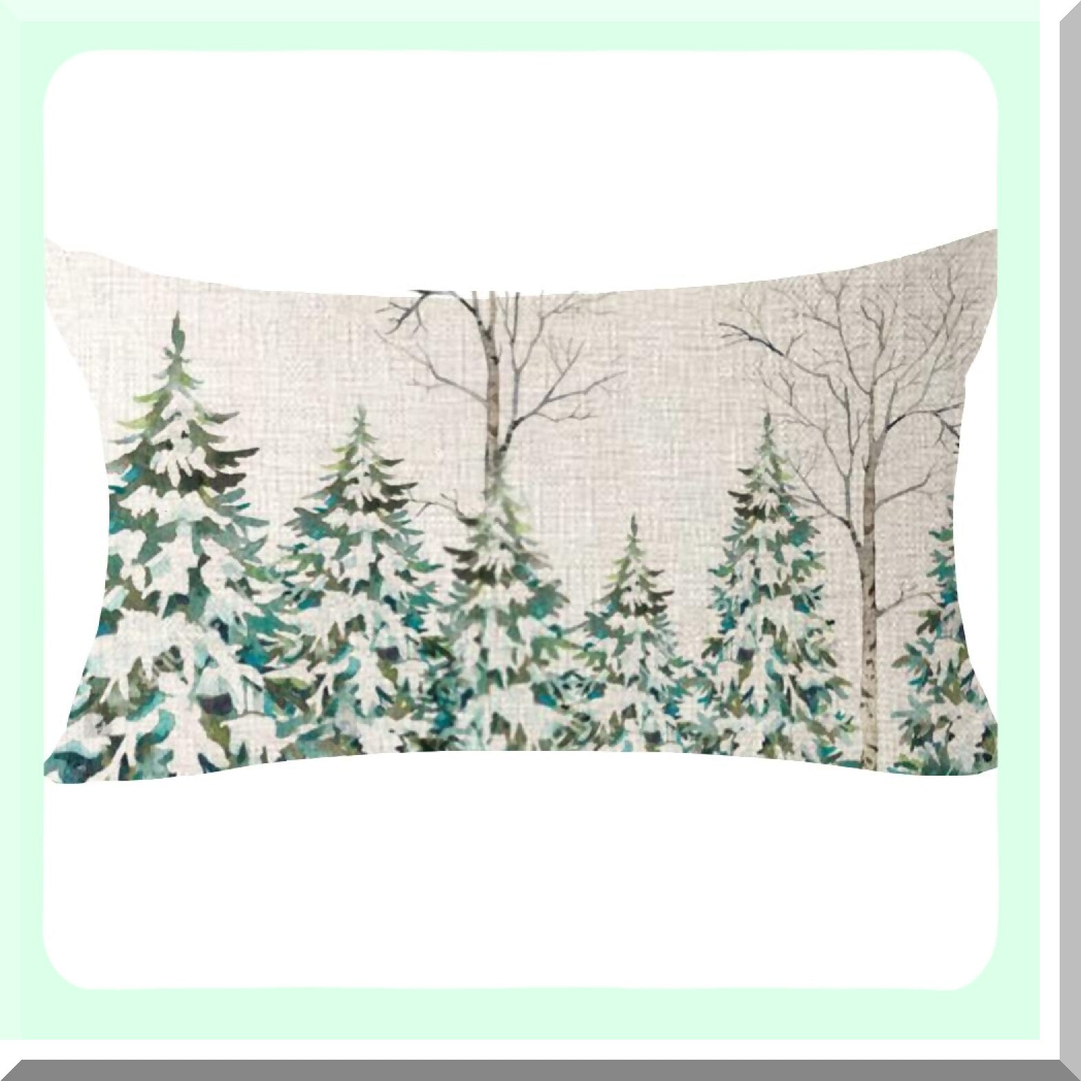 Winter Wonderland Pine Tree Decorative Pillow Cover - Snowy Merry Christmas Cushion Case for Outdoor Home Sofa - 12x20 Inch Cotton Linen - Light Green