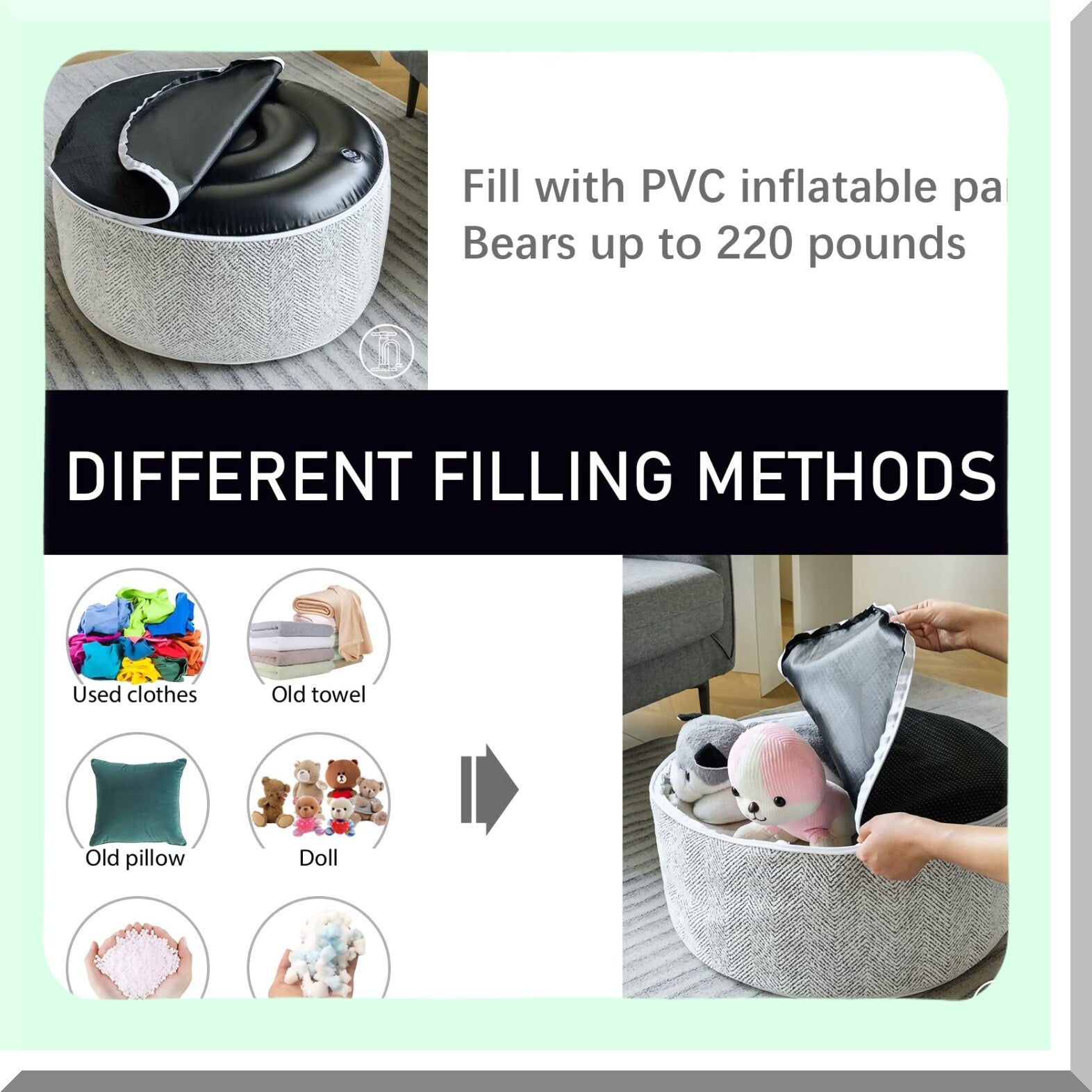 The package offers practical benefits including a complete set for easy setup and maintenance. It includes a filling and an inflatable pouf cover, ensuring immediate usability. The extra repair kit provides convenience for quick fixes, enhancing durability. Clear instructions simplify the assembly process, making it user-friendly. The included air pump allows for effortless inflation, saving time and effort. Overall, the package ensures a hassle-free experience with all necessary components provided.