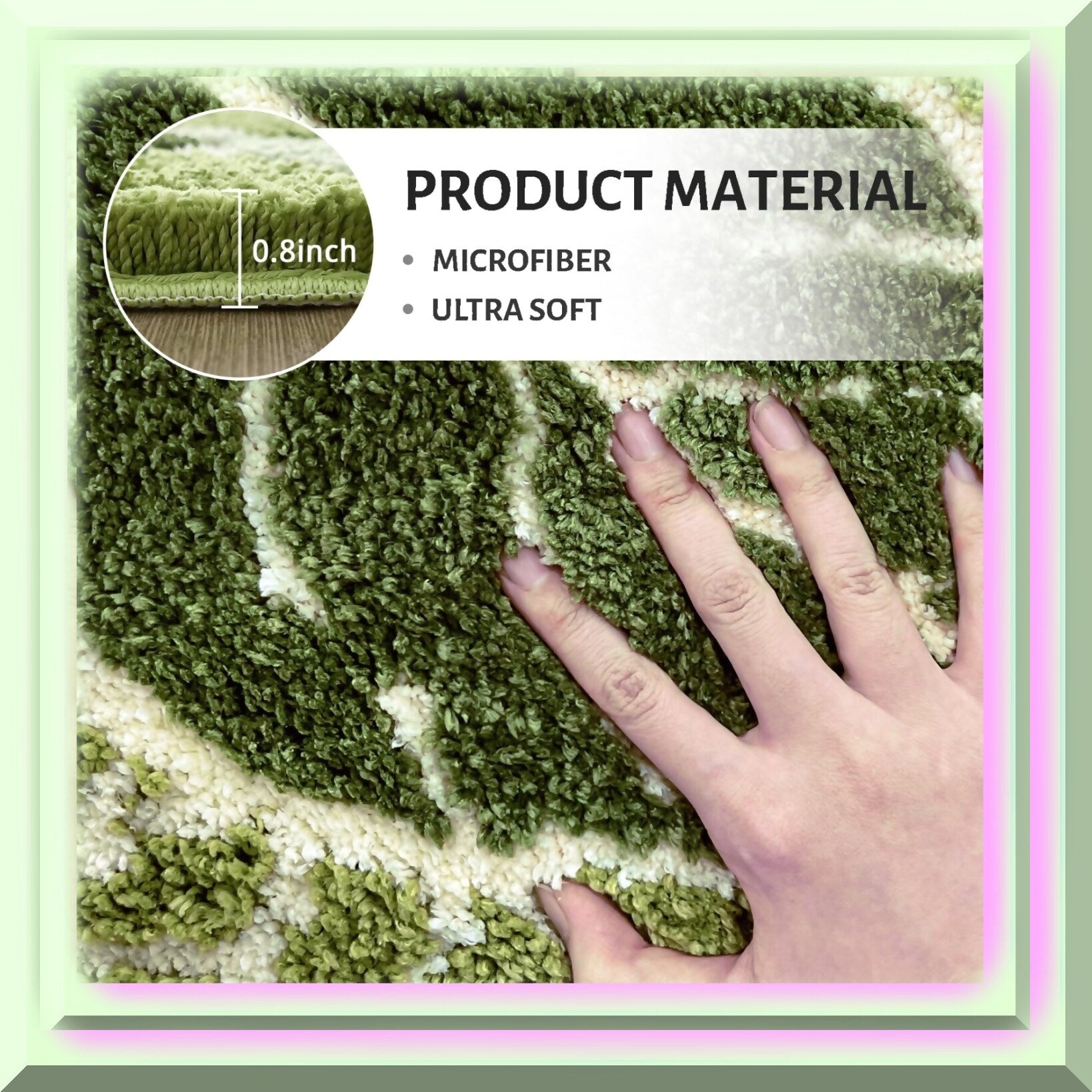 Enhance your bathroom decor with this sage green plant bath mat featuring a cute monstera leaf design. Measuring 17x24 inches with a thickness of 0.8 inches, it is ideal for small spaces. Crafted from soft microfiber, the mat offers a comfortable and plush surface that feels gentle underfoot. Its natural decorative pattern creates a calming atmosphere, perfect for a relaxing bathing experience. The mat provides excellent water absorption, helping to keep your feet dry and cozy. A TPR rubber backing ensures safety by preventing slips and enhances durability for long-lasting use. To maintain its non-slip properties, place the rug on a dry floor. Cleaning is simple—machine washable or hand-washable with warm or cold water, then air-dried or spun at low speed. Avoid using heat for drying. Designed for convenience and safety, this small bath mat combines functionality with charming botanical style.