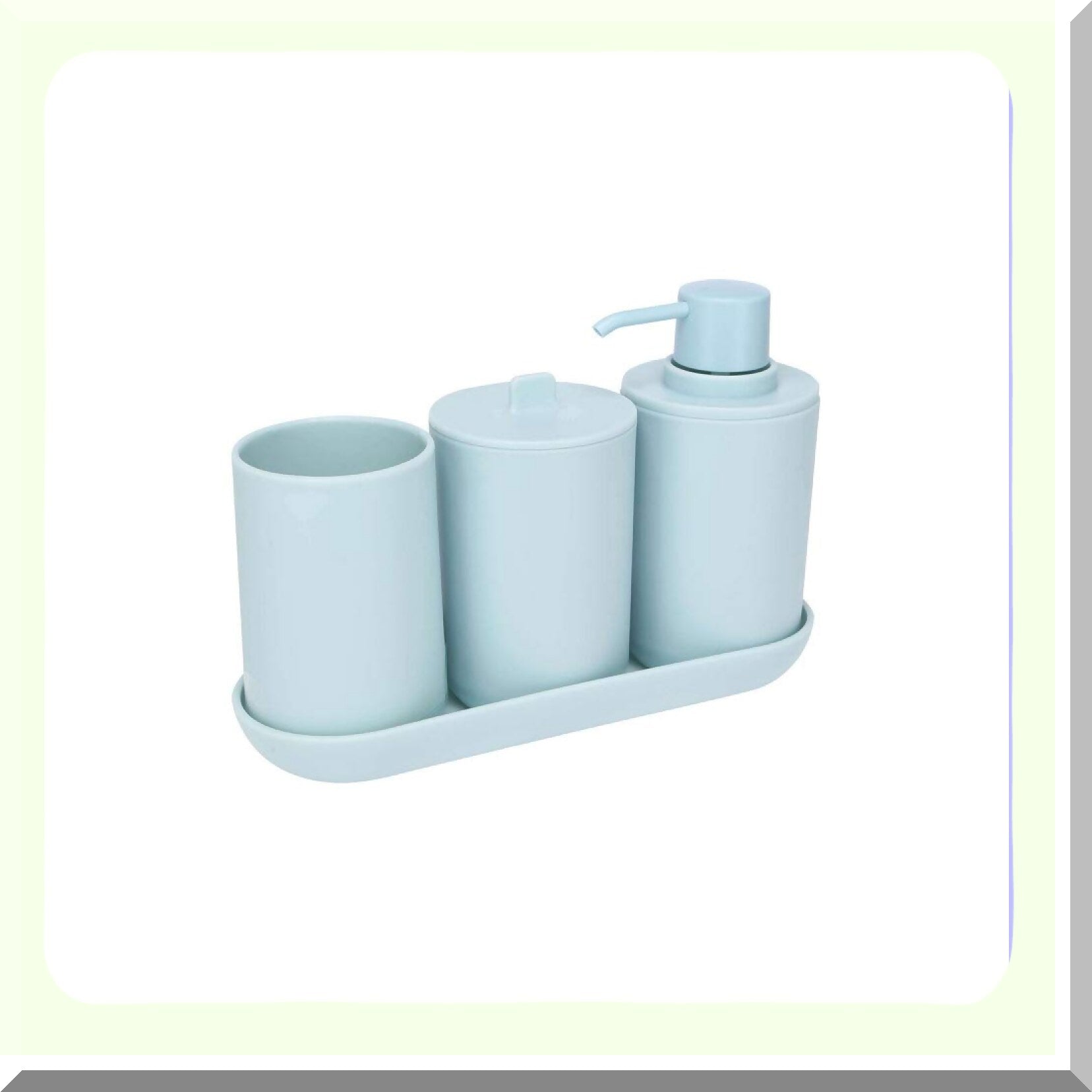 The Cade 4-Piece Bathroom Accessory Set in Soft Aqua offers a practical solution for organizing your bathroom essentials. Crafted from durable aqua plastic, this set includes a refillable soap dispenser, toothbrush holder, canister, and oval tray. The soap dispenser can hold up to 12 ounces of liquid soap or lotion and features a wide opening for easy refilling. The toothbrush holder has four slots, accommodating multiple brushes for convenience. The canister is versatile, suitable for storing cotton balls, Q-tips, hair accessories, makeup brushes, razors, or extra toothbrushes, with a lid to keep contents clean and dust-free. The oval tray provides space for smaller items like jewelry or hair accessories, or can be used to keep the set organized. Measuring 9.63" x 3.5" x 6.39", this compact set is ideal for countertop use, helping to keep your bathroom tidy and stylish.