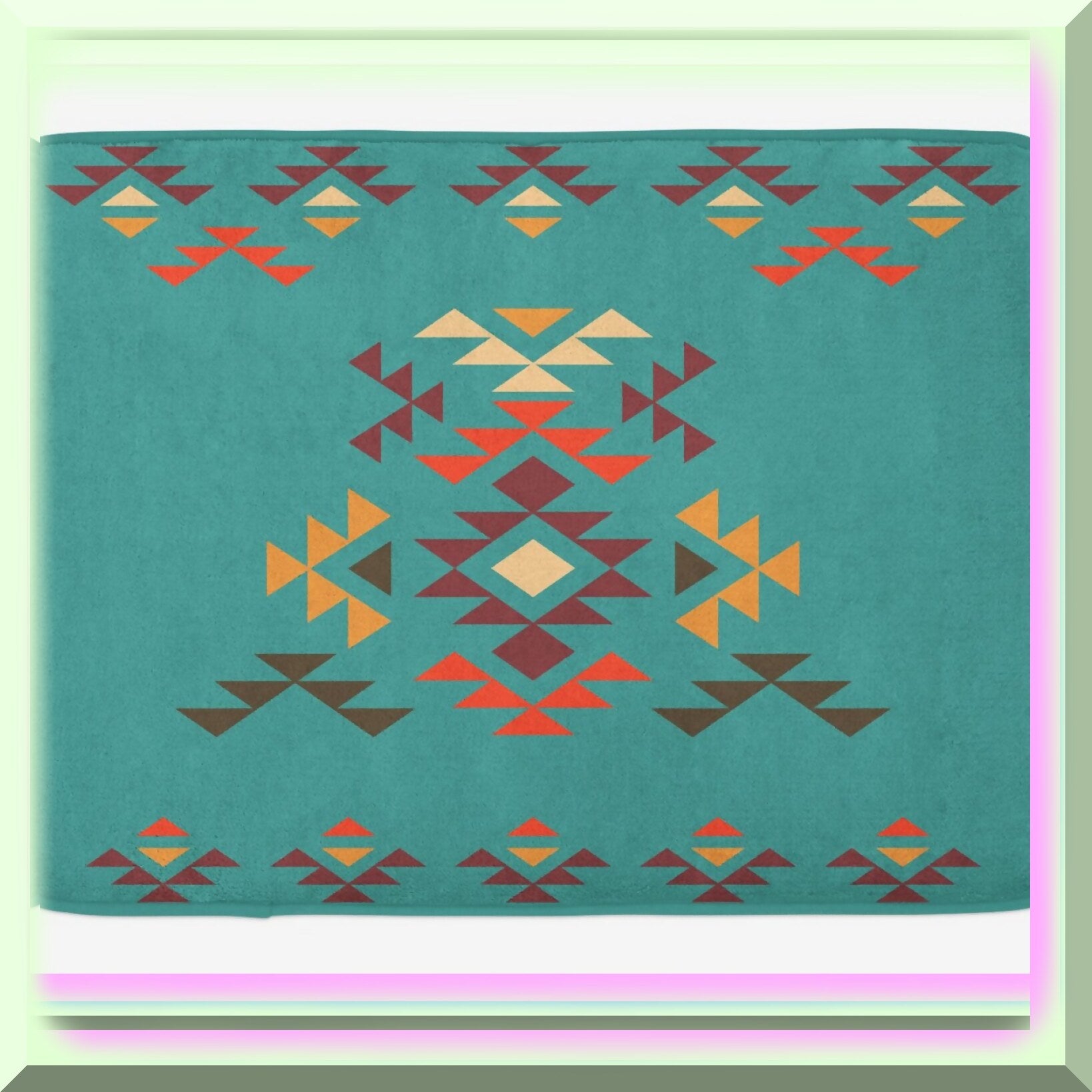 Aztec Bath Mat, Colorful Geometric Shapes, 30.2" x 20"