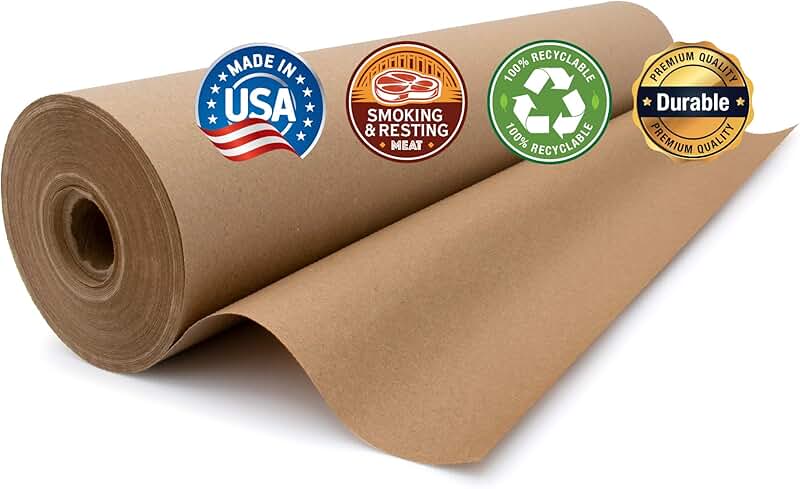 This industrial-grade kraft paper roll measures 17.75 inches wide and 100 feet long. It is suitable for moving, packing, shipping, gift wrapping, arts and crafts, and table settings. Made from recycled materials, it offers a durable and eco-friendly option for various applications.