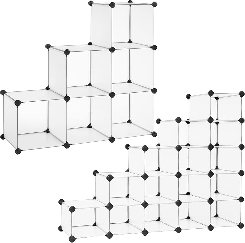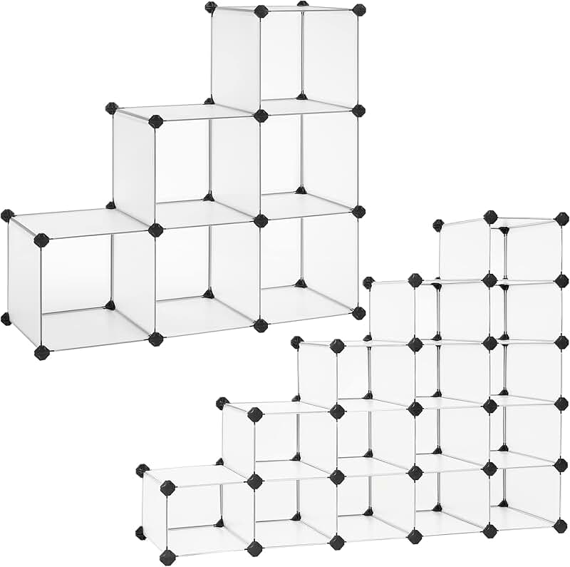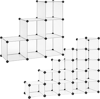 This storage organizer bundle includes a versatile cube storage unit with a shoe rack, designed for efficient organization in various spaces. The customizable plastic cabinet features modular components that can be arranged to suit different needs, making it ideal for entryways, closets, living rooms, and bedrooms. Its space-saving design helps maximize storage capacity while maintaining a tidy appearance. The unit's durable construction ensures stability and long-lasting use. The white finish provides a clean, neutral look that complements various interior styles. The modular design allows for flexible configuration, enabling users to create personalized storage solutions. Perfect for organizing shoes, books, accessories, or other household items, this storage system offers practical functionality and aesthetic appeal. Easy to assemble and maintain, it helps keep your living space organized and clutter-free.