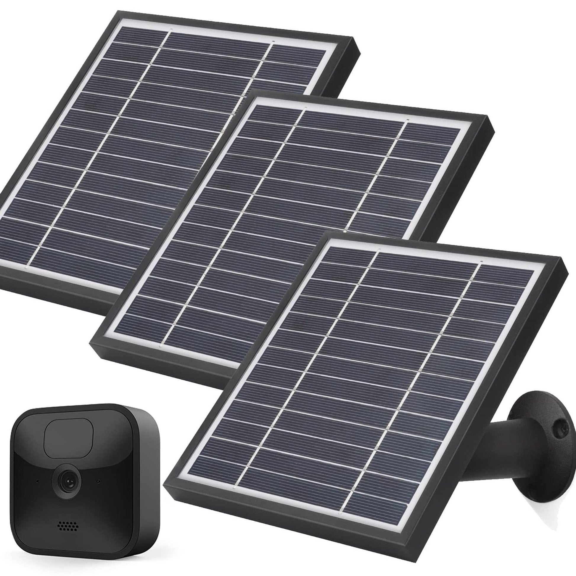 Each package includes three sleek black solar panels, a generous 11.8ft (3.6m) cable for flexible placement, three wall mounts, and all necessary screws and wall anchors. Please note that Blink cameras are not included.
