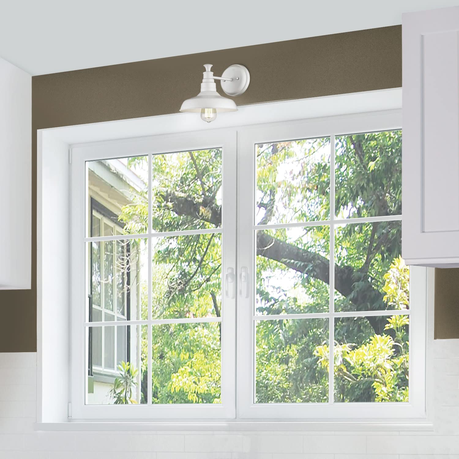 579649 Kimball Industrial Farmhouse 1-Light Indoor Wall Light with Metal Shade for Hallway Bathroom Kitchen Foyer, Antique White