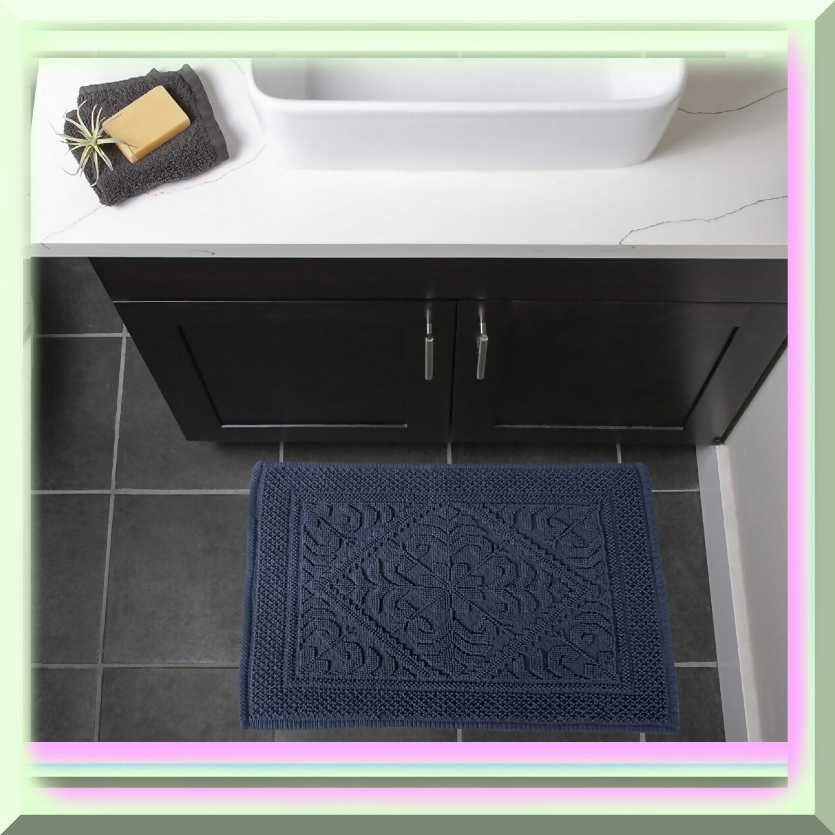 This decorative Jacquard bath rug measures 20x31 inches, providing a comfortable and warm spot to stand beside your tub, shower, sink, or vanity. Crafted from 100% cotton, it offers a soft touch, plush padding, and durable woven material with an elegant Jacquard design that adds a touch of luxury and spa-like comfort. Its versatile size makes it ideal for bathrooms, laundry rooms, and playrooms, where it quickly absorbs water and dries fast. The rug features multiple color options to easily match or coordinate with your existing or new bathroom decor, enhancing the overall aesthetic. Designed for long-lasting use, this bath rug combines quality craftsmanship with functional design, ensuring it remains a valuable part of your home for seasons to come. Whether for everyday comfort or decorative appeal, this rug offers a stylish and practical addition to any space.