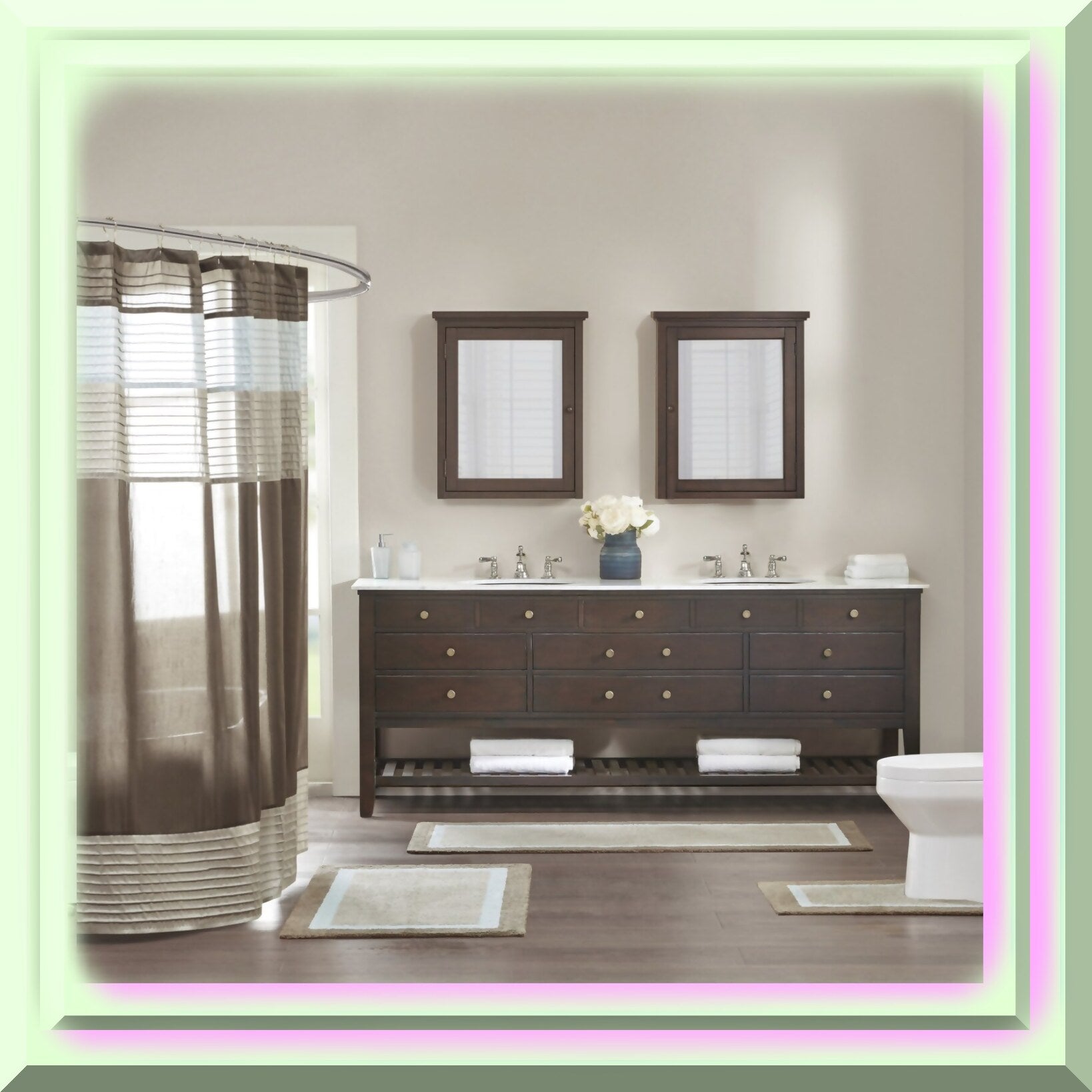 The Amherst Bathroom Rug is crafted from 100% tufted cotton, offering a soft and comfortable surface for your bathroom. Measuring 24 inches by 60 inches, this rug features a stylish border design that enhances your decor. Its skid-resistant reverse ensures safety on wet surfaces, while the absorbent and quick-drying properties keep your bathroom dry and comfortable. The neutral color palette adds a sophisticated touch, making it a versatile addition to any bathroom. Made from 160gsm cotton, this rug is machine washable for easy maintenance. Its plush texture and functional design make it an ideal choice for adding comfort and style to your bathroom space.