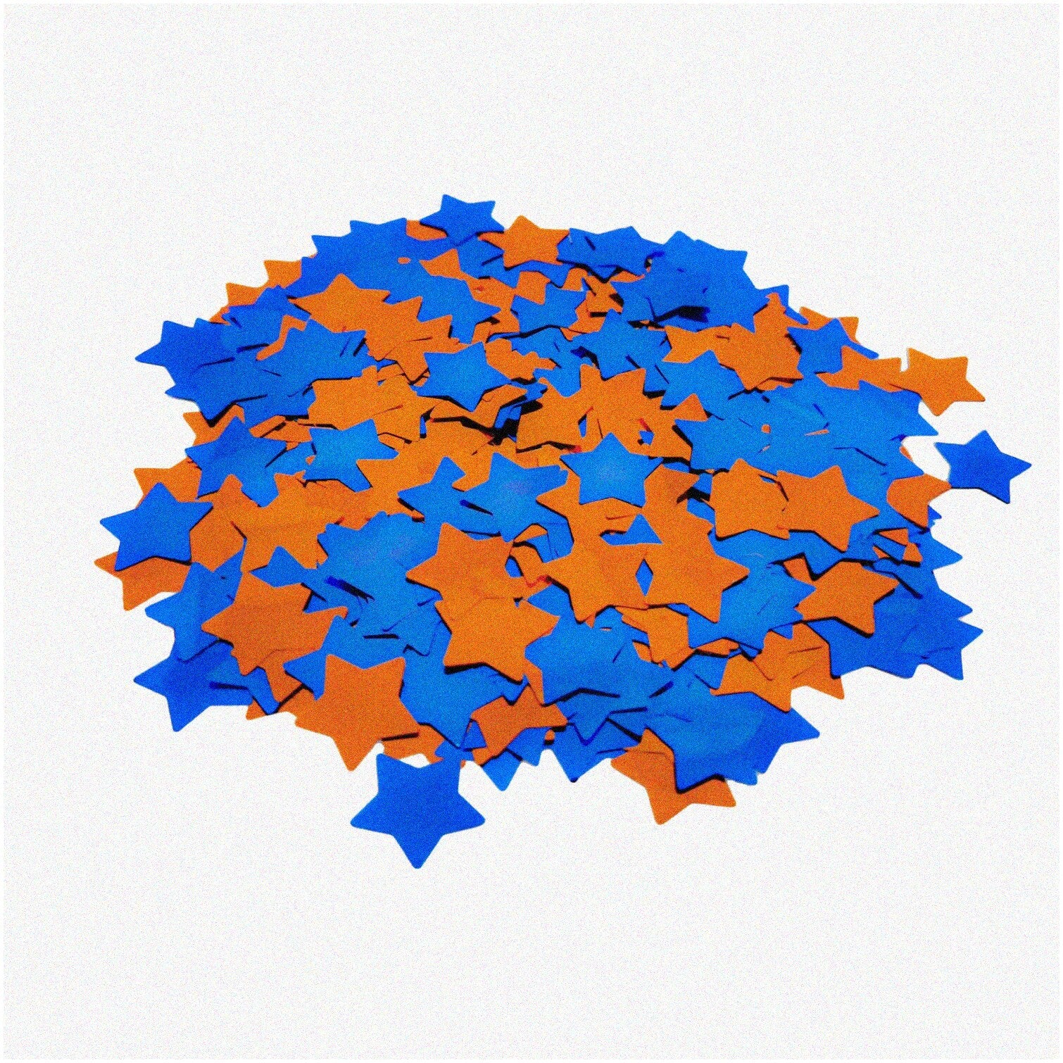 SparkleFetti features blue and orange star-shaped and confetti pieces designed to add a touch of sparkle to any celebration. Each piece measures approximately 1.5cm and the package contains 1.76oz of glittery fun. The confetti is made from shiny, colorful material that enhances the festive atmosphere. Perfect for weddings, birthdays, and parties, these decorative accents can be scattered across tables to create a vibrant and celebratory setting. Their bright colors and shimmering finish make them ideal for adding a decorative flair to any event. The confetti is easy to sprinkle and provides a fun, eye-catching detail to your table decor. Whether used as a centerpiece accent or scattered around the table, SparkleFetti helps elevate the visual appeal of your celebration with its lively colors and sparkling finish. Enjoy creating memorable moments with this glittery confetti that brings a cheerful and festive vibe to any occasion.