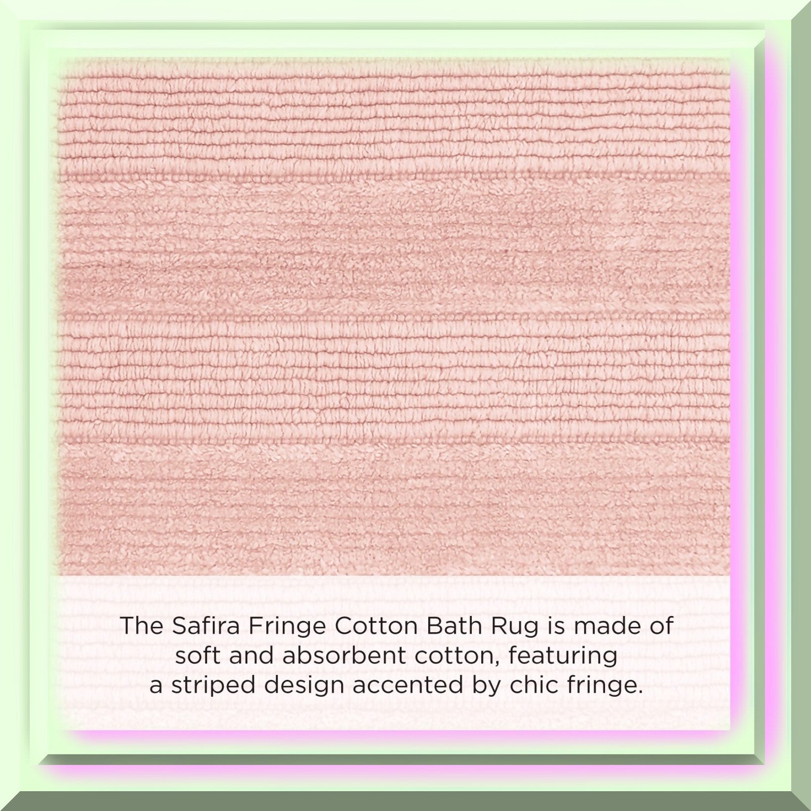 This bathroom rug features a woven fringe design crafted from 100% cotton, offering a soft and absorbent surface. Measuring 20 x 56 inches, it adds a touch of elegance to your bathroom decor. The striped pattern is complemented by chic fringe accents, enhancing its visual appeal. Made from durable cotton fabric, this rug is easy to maintain with machine washability—simply wash cold separately with mild detergent, use non-chlorine bleach when needed, and tumble dry low. It is recommended to use rug grippers or a rug pad for added stability. The rug's timeless style and high-quality fabric ensure it remains a stylish and functional addition to your space. Imported and designed to combine both form and function, this bath mat provides a super soft, highly absorbent surface that elevates your bathroom decor effortlessly.