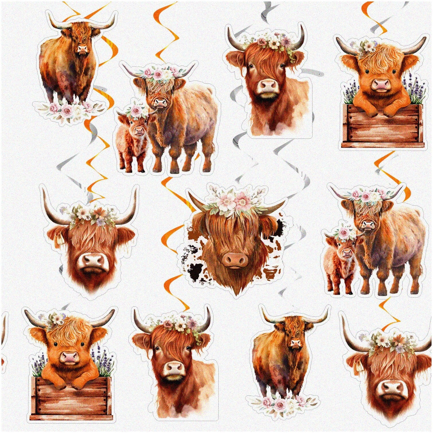 Enhance your celebration with this set of 24 Highland Cow Swirls & Spirals Party Pack. Crafted from durable, high-quality card stock, these decorations feature charming shades of brown, khaki, and white, with colorful pendants. The package includes 24 Highland cow swirl decorations, each with six unique patterns and four swirls per design, providing ample options for decorating your event. These reusable decorations are easy to hang on walls, ceilings, or in rooms to create a lively, fun atmosphere. Perfect for themed parties, animal celebrations, farm or western-themed events, and birthdays, they add a playful touch to any setting. Designed for quick setup, they can be used repeatedly, making them a versatile choice for various occasions. The decorations are lightweight and simple to assemble, offering a charming and festive look. Manual measurements may cause slight size differences, and colors may vary slightly due to screen displays.