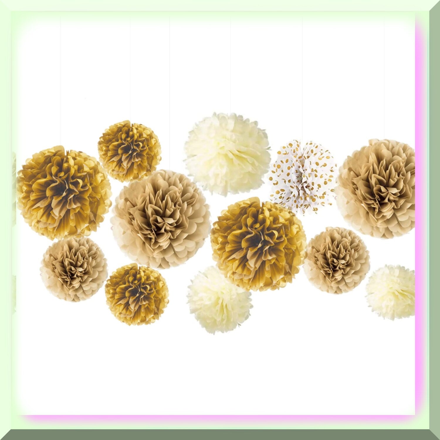 Create a captivating atmosphere with this set of 12 paper flower decorations in three different sizes. Included are five 12-inch large tissue pom poms, four 10-inch flowers, and three 8-inch flowers, offering a variety of sizes for versatile display options. Crafted from non-toxic paper material, these multi-colored tissue paper flowers are easy to assemble with simple, step-by-step instructions. Perfect for enhancing any celebration, they can be hung from ceilings, draped along walls, or used as table centerpieces to add a touch of elegance and vibrancy. Whether for birthdays, weddings, baby showers, or nursery decor, these delicate and colorful pom poms bring a whimsical and enchanting feel to any space. Their versatile design allows for endless creative arrangements, transforming ordinary settings into memorable, festive environments. Easy to fluff and hang, these decorations are ideal for creating a stunning backdrop for your special occasion.