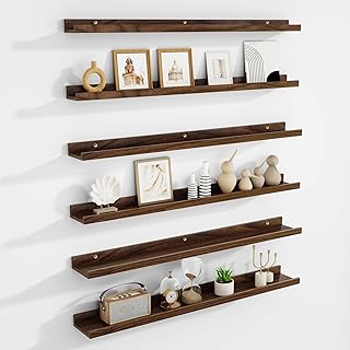 Set of 6 floating wall shelves, each measuring 36 inches, designed for versatile display and storage. These wall-mounted shelves are ideal for organizing books, photo frames, and decorative items in living rooms, bedrooms, or other spaces. Crafted with a walnut finish, they add a warm, natural touch to any decor. The sturdy construction ensures reliable support for various items, while the sleek design provides a clean, modern look. Easy to install, these shelves help maximize wall space and keep your belongings neatly arranged. Perfect for showcasing personal collections, artwork, or everyday essentials, they combine functionality with aesthetic appeal. Suitable for a variety of interior styles, these shelves enhance the visual interest of any room while offering practical storage solutions. Their durable build and attractive finish make them a practical addition to your home decor.