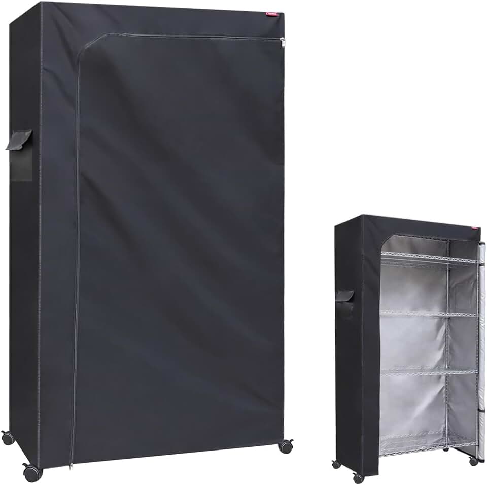 This waterproof shelf cover is designed to protect heavy-duty shelving units from dust, dirt, and moisture. Made from durable, high-quality material, it provides reliable coverage for your shelves, helping to keep stored items clean and dry. The cover features a two-way zipper for easy access and secure closure, ensuring a snug fit over the shelves. Measuring 36 inches by 18 inches by 72 inches, it is suitable for various shelving sizes. The black color offers a sleek, unobtrusive appearance that blends well with different environments. Please note that this product includes only the cover and does not include the shelves. Its heavy-duty construction makes it ideal for use in garages, storage rooms, or workshops where protection from environmental elements is needed. Easy to install and remove, this cover helps maintain a tidy and protected storage space.