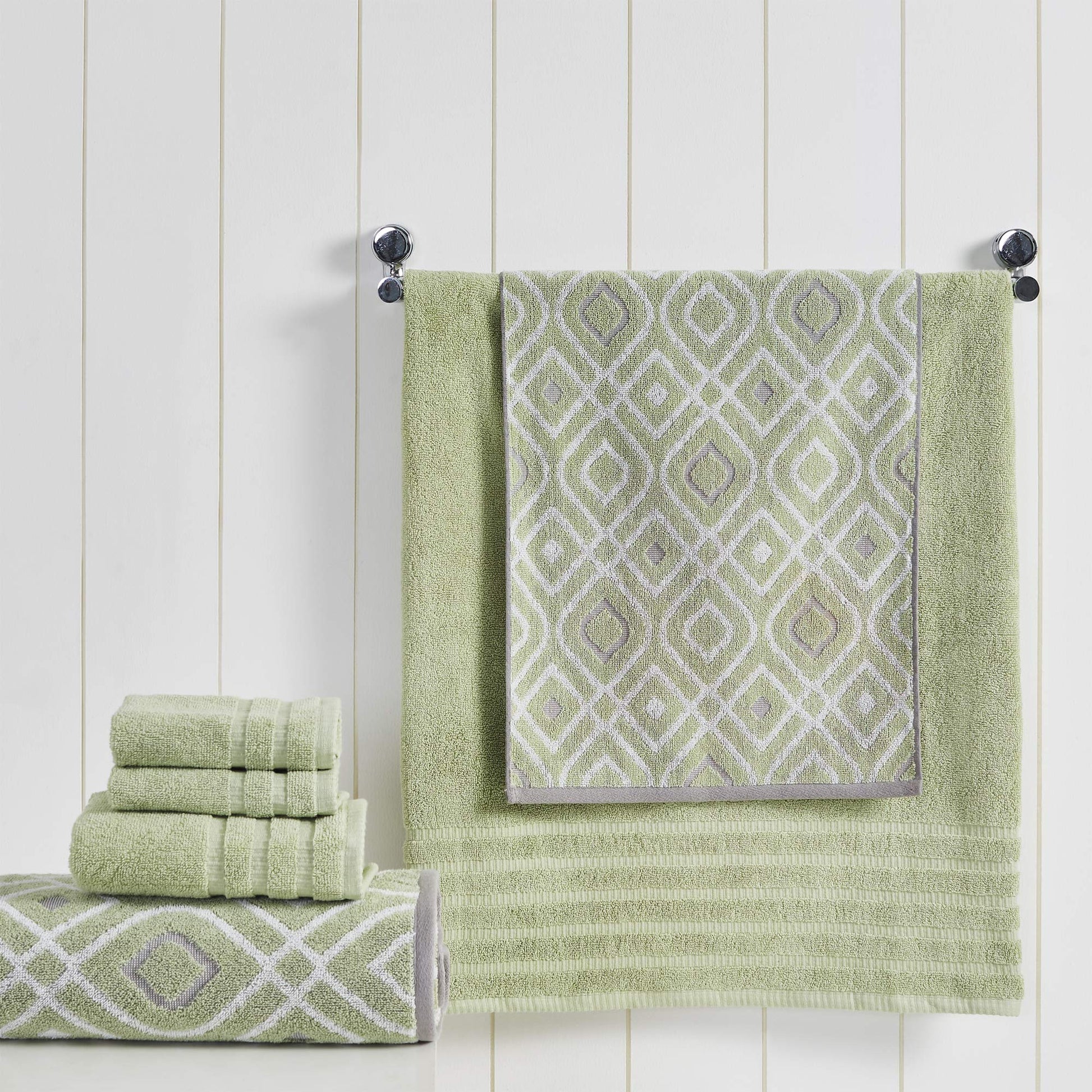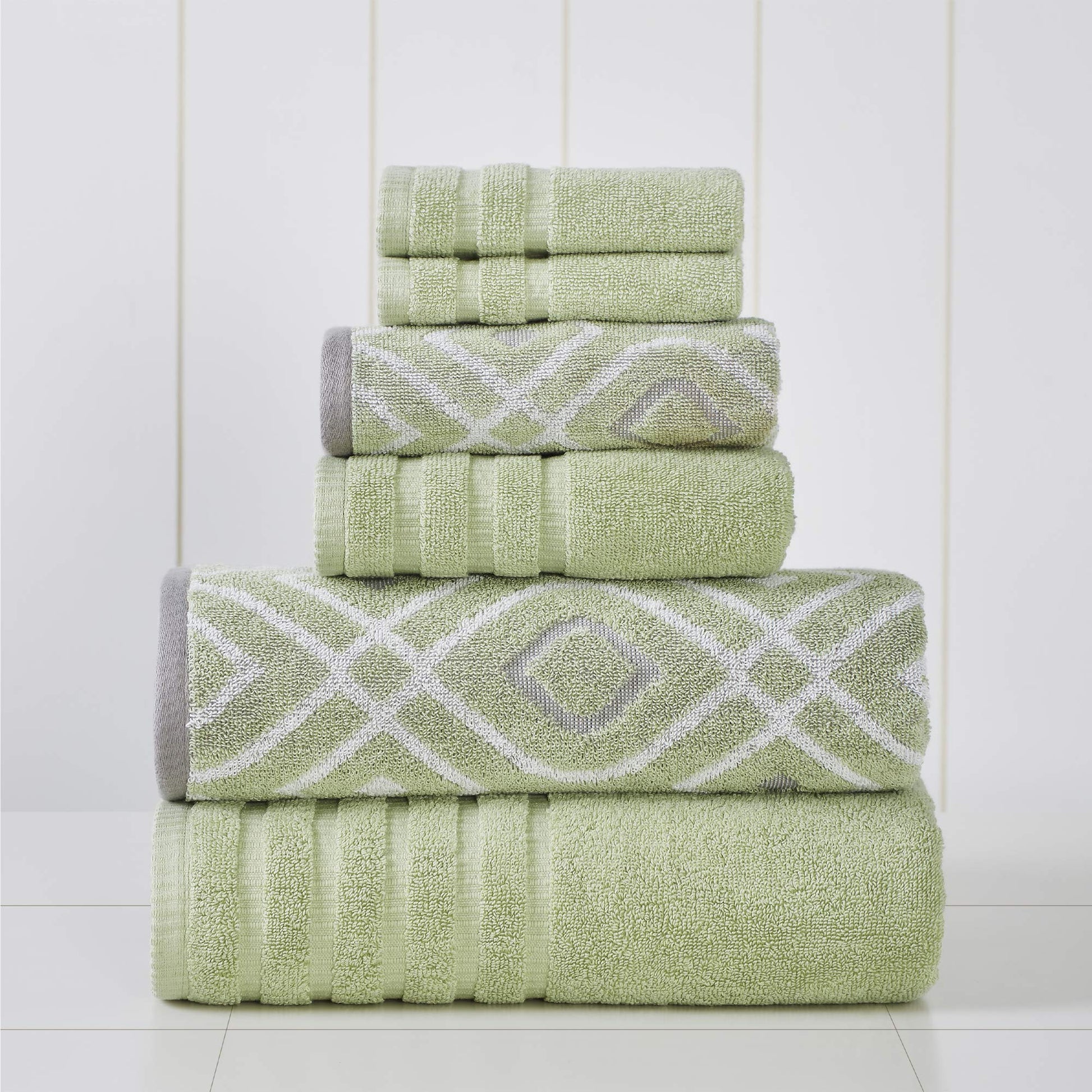 6-Piece Yarn Dyed Oxford Stripe Jacquard/Solid Ultra Soft 500GSM 100% Combed Cotton Towel Set Sage Green]