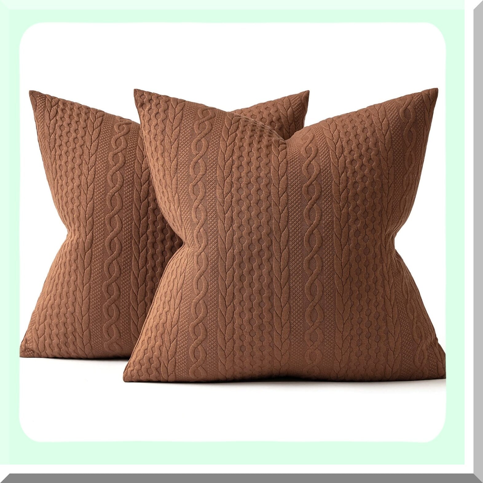 Brown Farmhouse Embossed Pillow Covers - Set of 2 | Modern Soft Cushion Covers 18x18 for Sofa & Bed | Decorative Livingroom Throw Pillow Covers