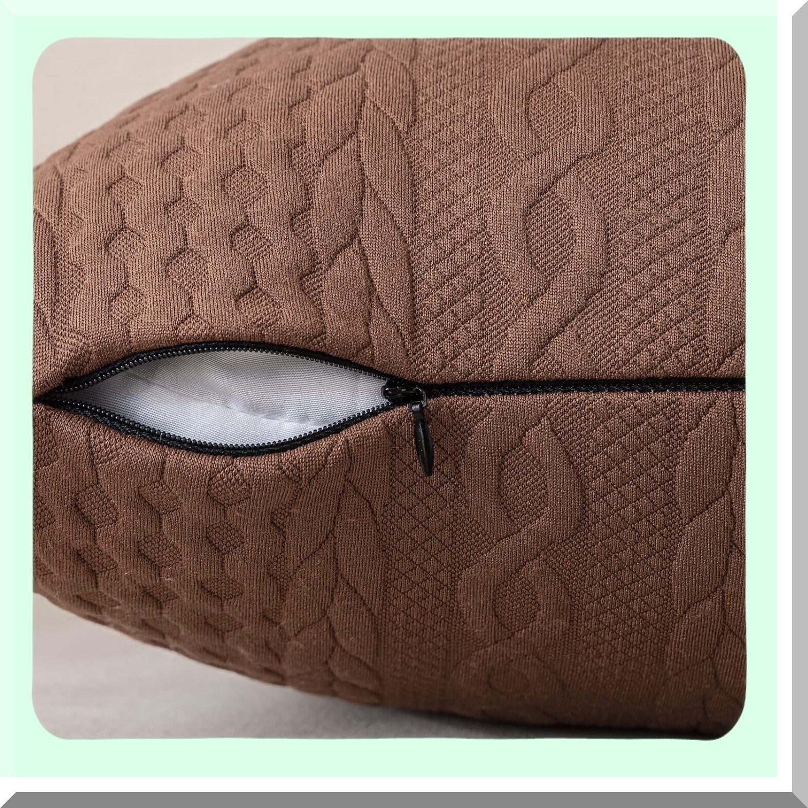 Soft embossed pillow covers add warmth to home decor, resembling a cozy cable knit sweater.