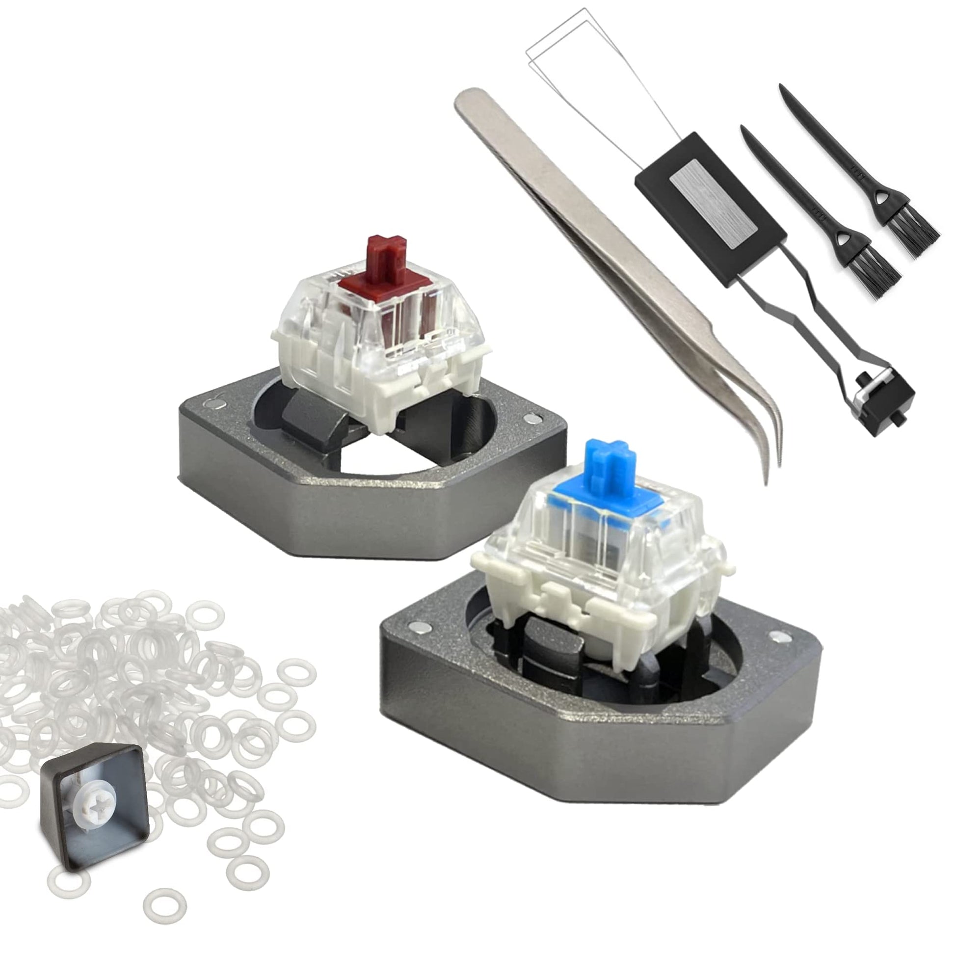 The 6-in-1 Mechanical Keyboard Accessories Pack was designed with the end-user in mind (being regular users ourselves). No more frustrations, aches, or difficulties associated with opening/cleaning switches. A unique kit optimally designed for quick and easy switch disassembly - allowing you to open a switch in the fraction of the time that it usually takes. Constructed with built-to-last materials, this toolkit won't have performance issues while allowing for a gentle and scratch-free operation for your switches and keyboard.You will have at your disposal all the tools you may need for a breezy cleaning process.Included in the 6in1 Switch opener kit 1 x 2-in-1 Cherry MX + Kailh Switch Opener1 x 2-in-1 Switch + Key-Cap puller/remover1 x Tweezers Stem/switch grabber1 x 120 pcs 50A Clear O-rings/Dampeners2 x Keyboard Brushes (small)Some tips on using the 6-in-1 toolkit to complete your Keyboard's lubricating/mod process 1. Remove the Keycaps using the Keycap remover end of the 2in1 keycap+switch puller2. Remove the Switch using the Switch remover end3. Use the Dual Switch Opener to open the switch4. Lubricate the switch right at the switch opener tool 5. Hold the stems/spring using the Tweezers6. Reassemble the Switches7. Place the Clear 50A O ring dampener on the stem of the switch8. Clear any lint/dust from the keyboard using the brushes9. Put together the mechanical keyboardCompatible with Cherry MX, Kailh, Gateron, Durock, Zeal, Holy Pandas, Tealios, Outemu and many other Cherry MX n Kailh style switchesThis pack makes a lovely gift for any mechanical keyboard enthusiast .