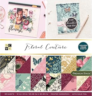 This set includes 36 sheets of 12x12-inch printed cardstock paper. The double-sided heavy-duty paper features vibrant floral designs and foil accents, making it suitable for various craft projects. Ideal for scrapbooking, card making, and other creative endeavors, the sturdy material provides durability and a polished look. The variety of patterns and textures allows for versatile use in different craft applications.