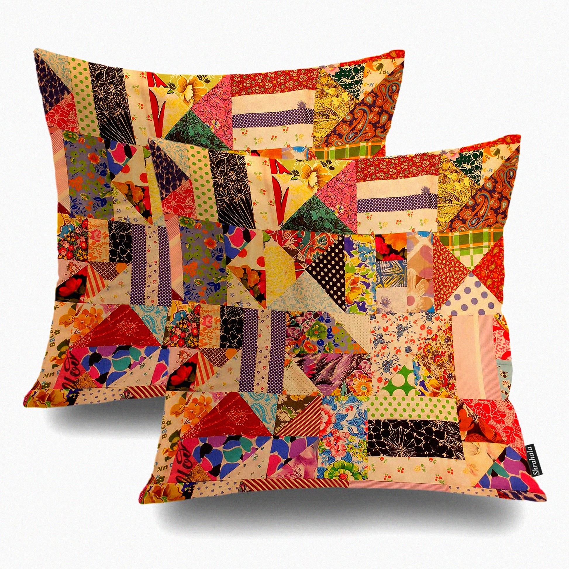 Geometric Patchwork Throw Pillow Set - Retro Decorative Cushion Covers 18x18, Square Multi Colored Pattern for Sofa Bedroom Car, 18 Inches, Set of 2