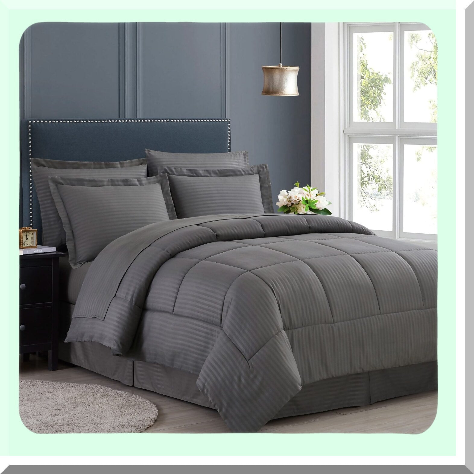 Luxury Gray Bedding Bundle - 8 Piece Comforter Set with Bed Skirt, Sheets, Pillowcases, Shams - King/Queen Size Cozy Bed in a Bag