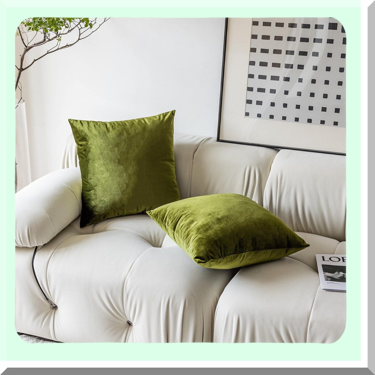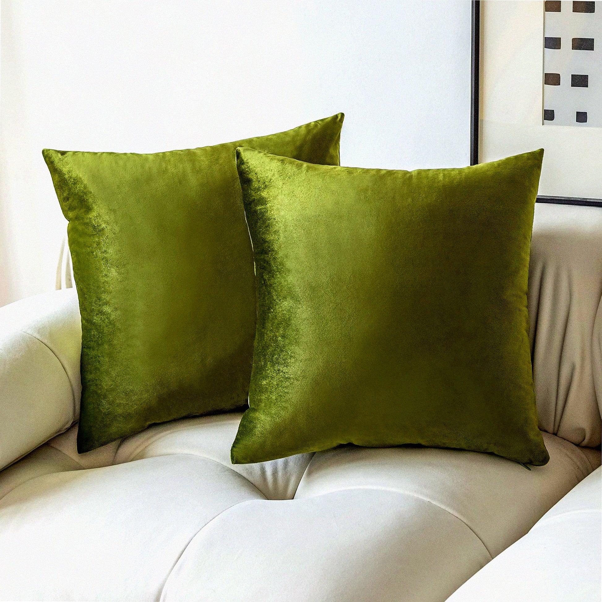 Spring Green Velvet Pillow Shams - Set of 2 Decorative Square Throw Cushion Covers for Couch Sofa - St Patrick's Day Accent - 26x26 Inch Plush Euro Pillows