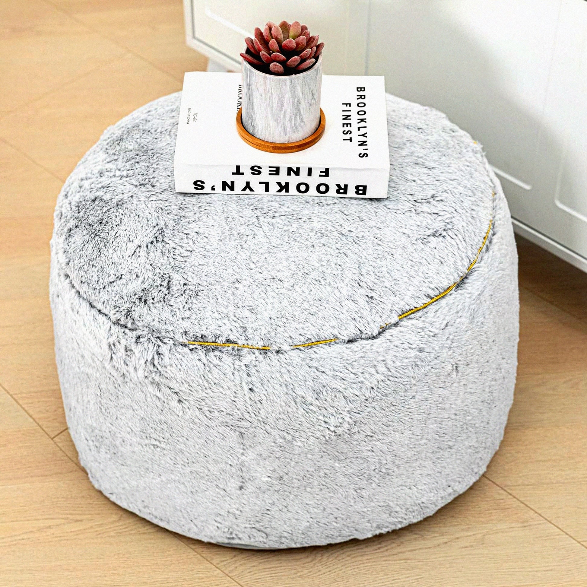 Snow Blue Round Foot Rest Pouf Ottoman - 20x20x12 Inches Small Furniture for Living Room & Bedroom. Under Desk Stool, Unstuffed & Without Filler.