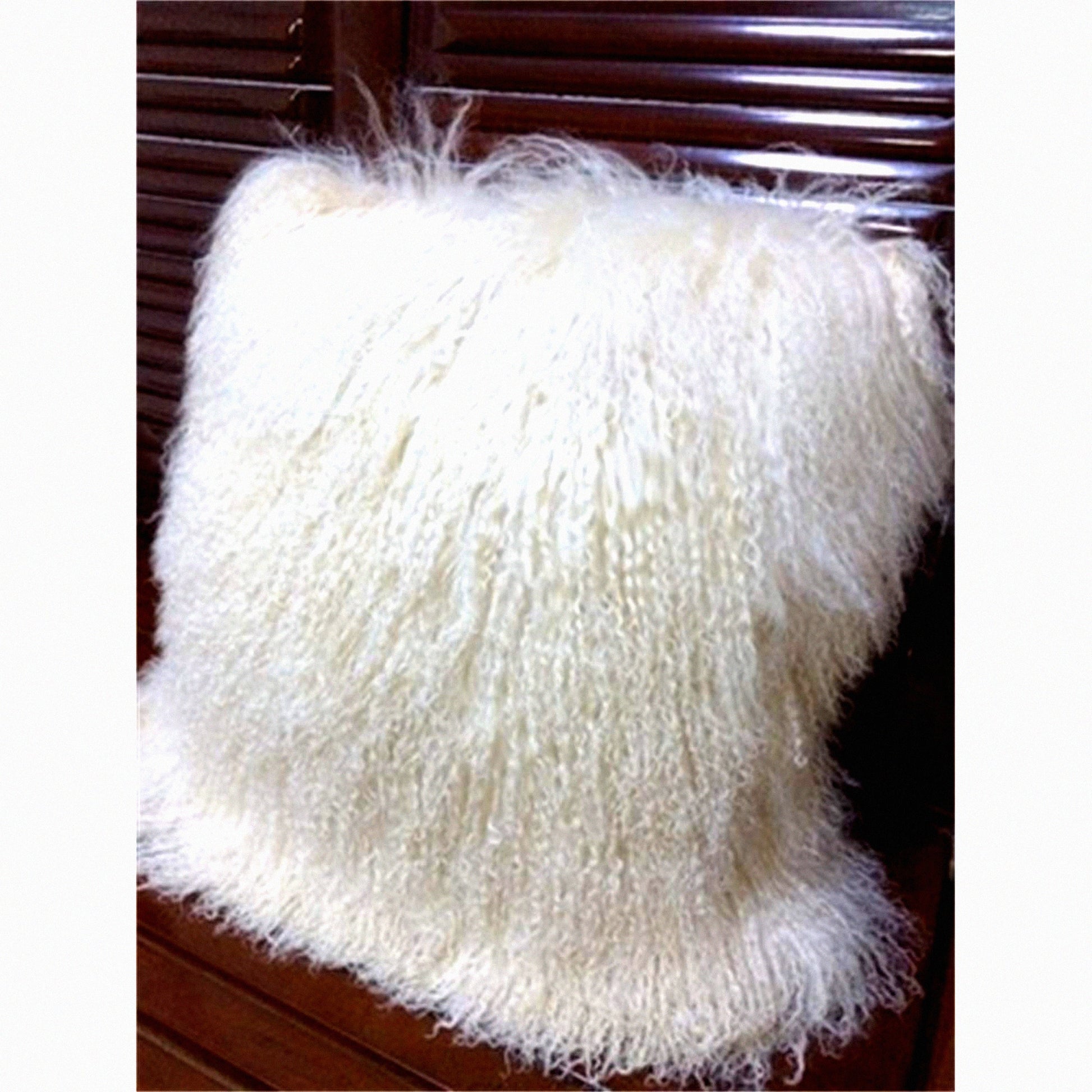 Luxury Mongolian White Fur Throw Pillow - 16x16 Decorative Cushion Cover for Living Room & Bedroom