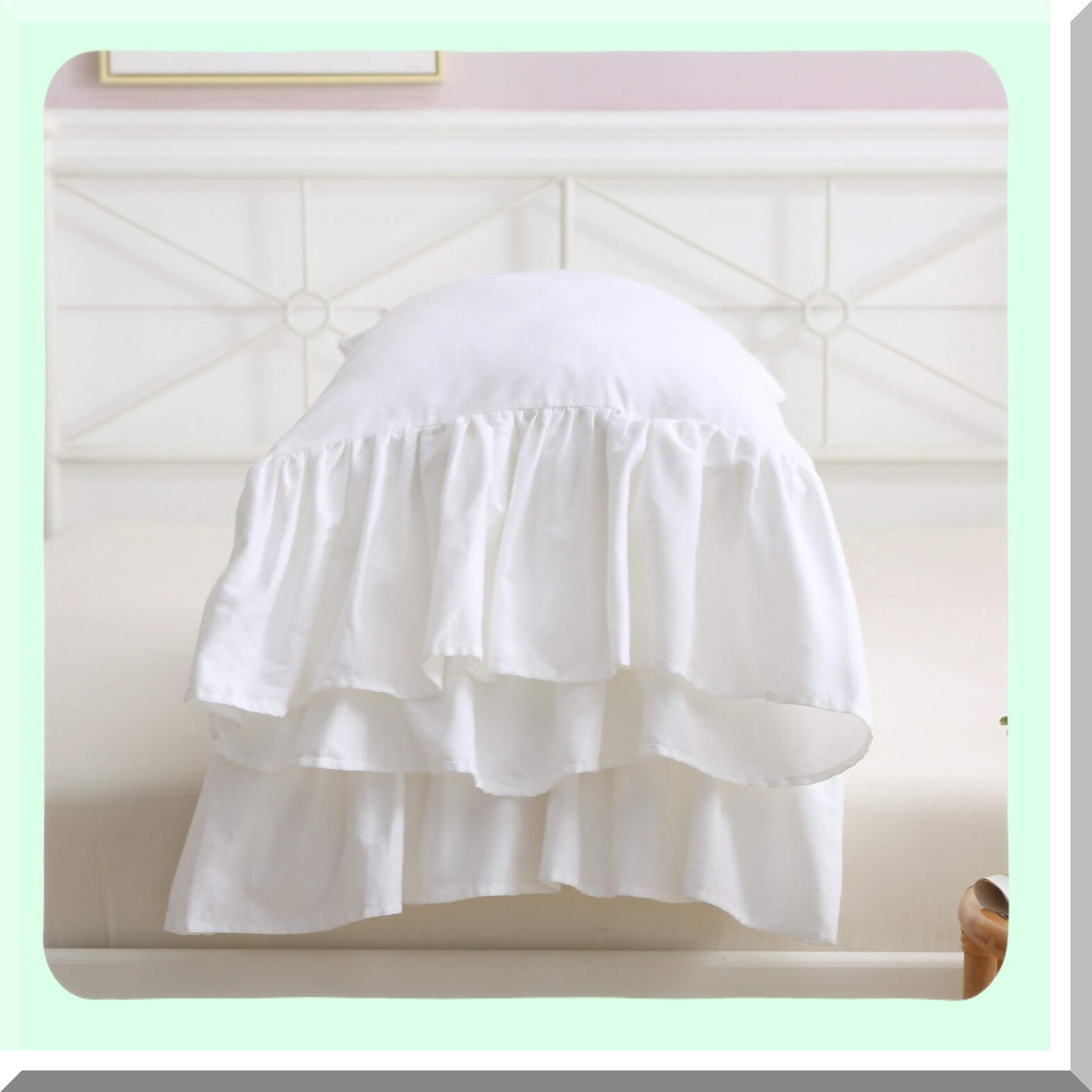 Ruffle Chic Cotton Pillowcase Set - White Standard Size Bed Pillow Covers with Long Ruffles, Soft Shams Cases, 20"X26", 2pcs