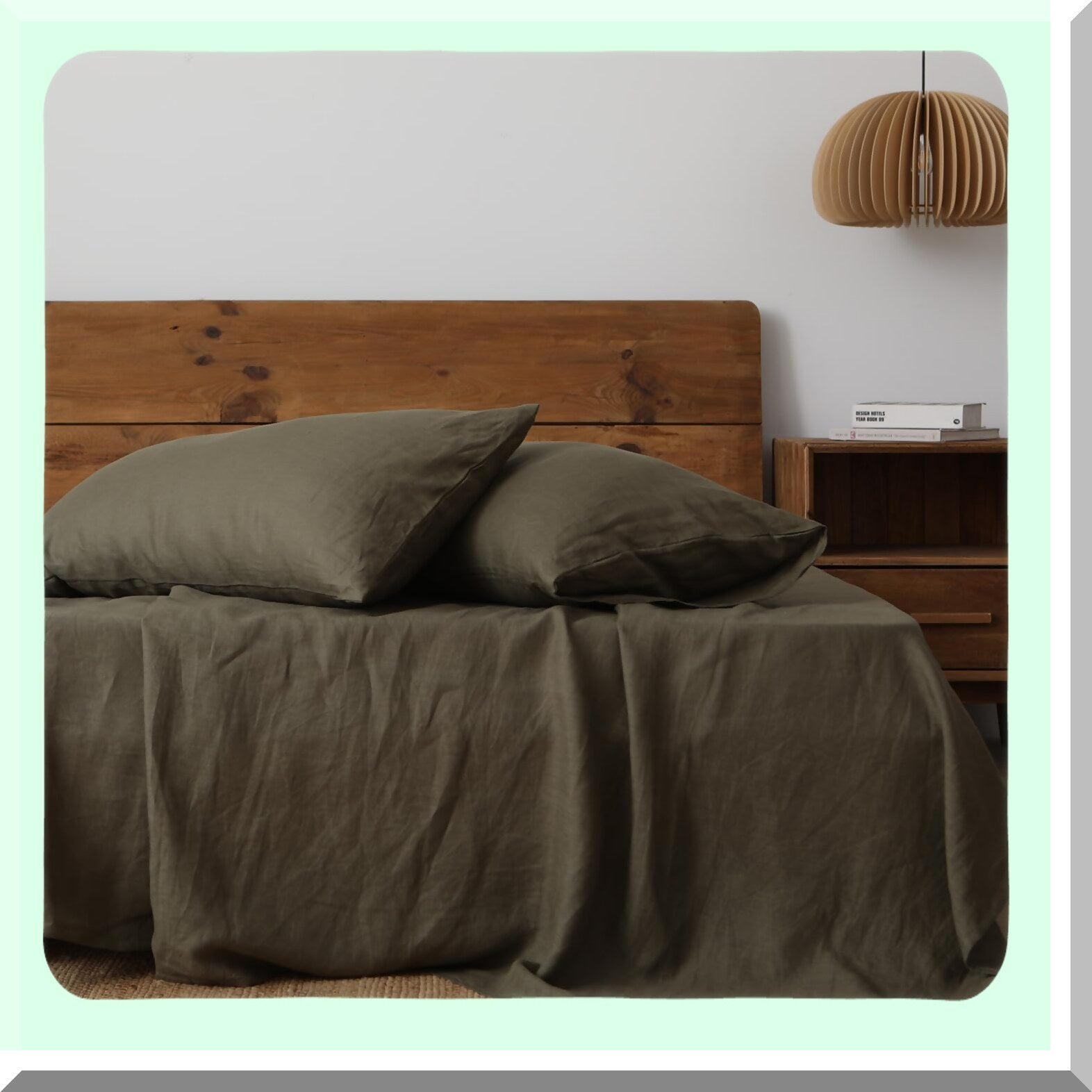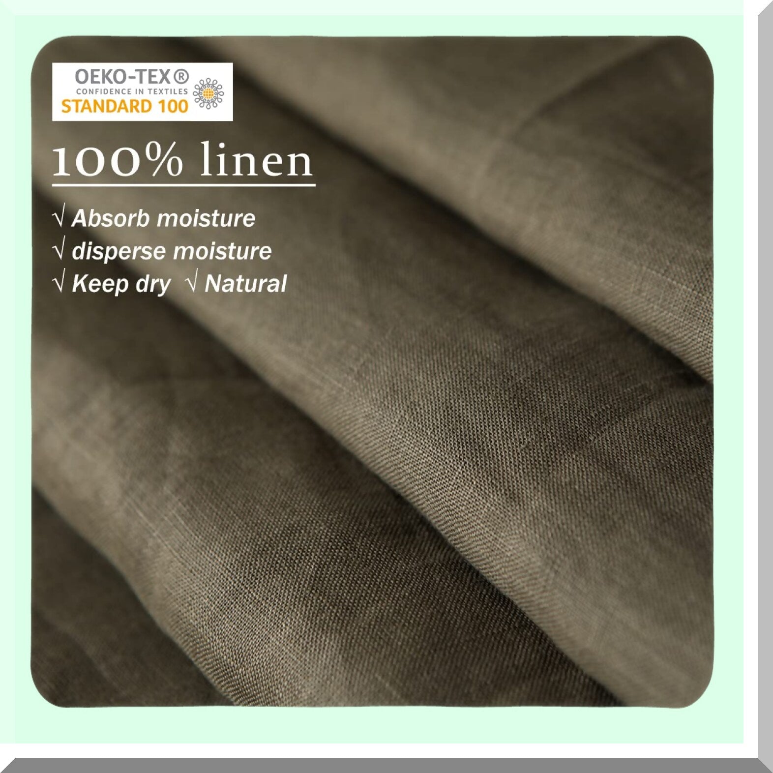 Breathable Flax Pillowcase Set - 100% Natural Linen, Durable Envelope Pillowcases - Olive Green Queen Size, Washed Textured Bedding, Pack of 2