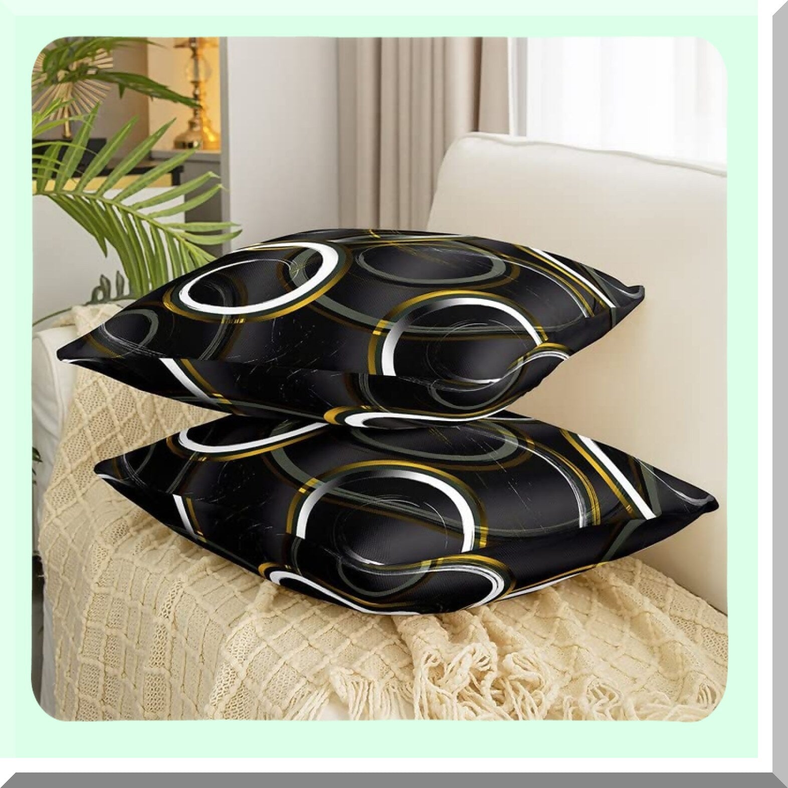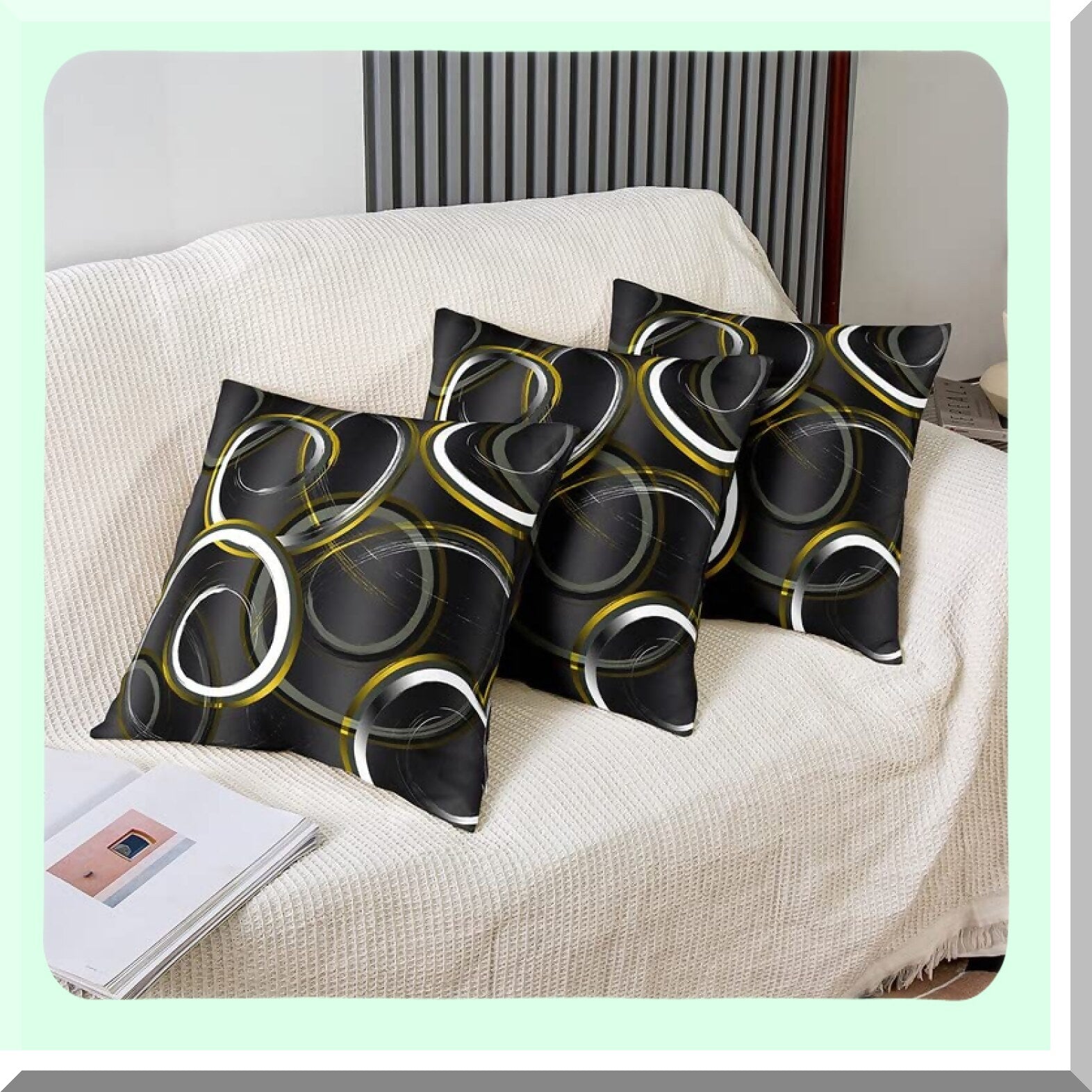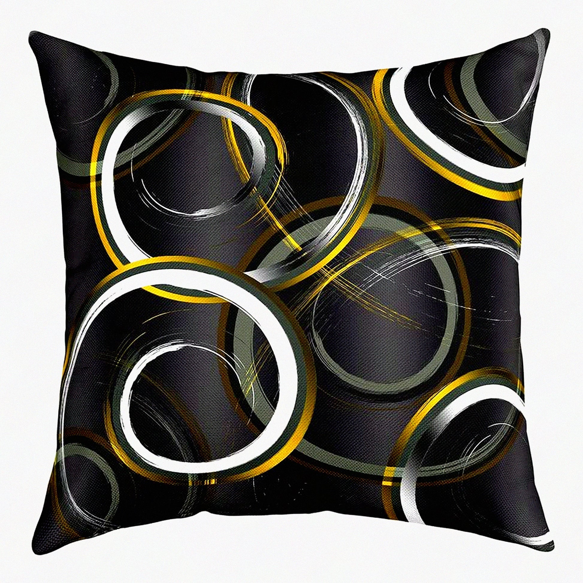 Geometric Circle Decor Pillow - Modern Abstract Art Yellow White Black Cushion Cover for Couch Sofa Bed - 18x18 inch - Inserts Not Included