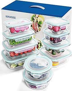 This set includes ten borosilicate glass food storage containers with airtight lids, designed for versatile use in the kitchen. Made from durable, heat-resistant glass, these containers are safe for microwave, oven, and freezer use, making meal prep and storage convenient. The leak-proof lids ensure secure sealing to prevent spills and maintain freshness. BPA-free materials provide a safe option for storing food. The containers are suitable for baking, reheating, and freezing, offering a practical solution for everyday food management. Their clear design allows easy identification of contents, and the stackable shape helps save space in cabinets and refrigerators. Ideal for storing leftovers, prepped ingredients, or snacks, these containers are a reliable addition to any kitchen. The set is also suitable for gifting, thanks to its functional and attractive design. Overall, these containers combine durability, safety, and convenience for efficient food storage and organization.