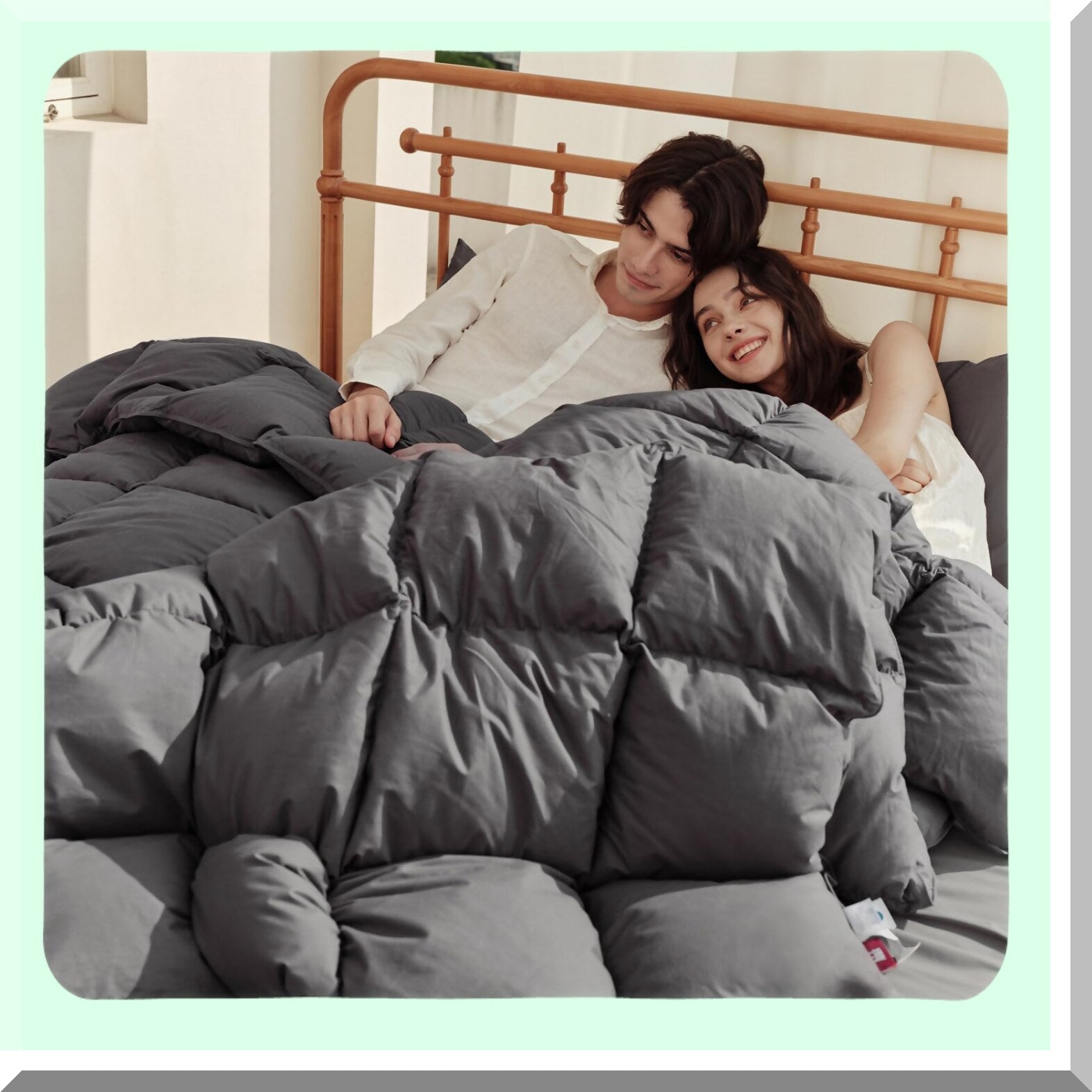 The practical benefits of this down comforter include a fluffy and warm bedding option for the winter months. It is designed with a 100% soft cotton cover and has a heavyweight duvet insert for added warmth. The comforter is queen/full size, making it suitable for a variety of bed sizes. It also features 8 tabs for easy attachment to a duvet cover. Overall, this comforter provides a cozy and comfortable sleeping experience, ideal for cold weather conditions.