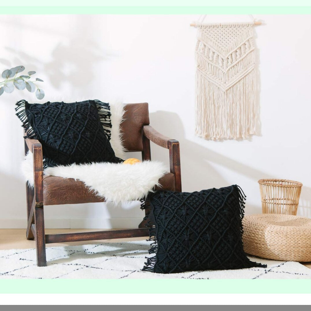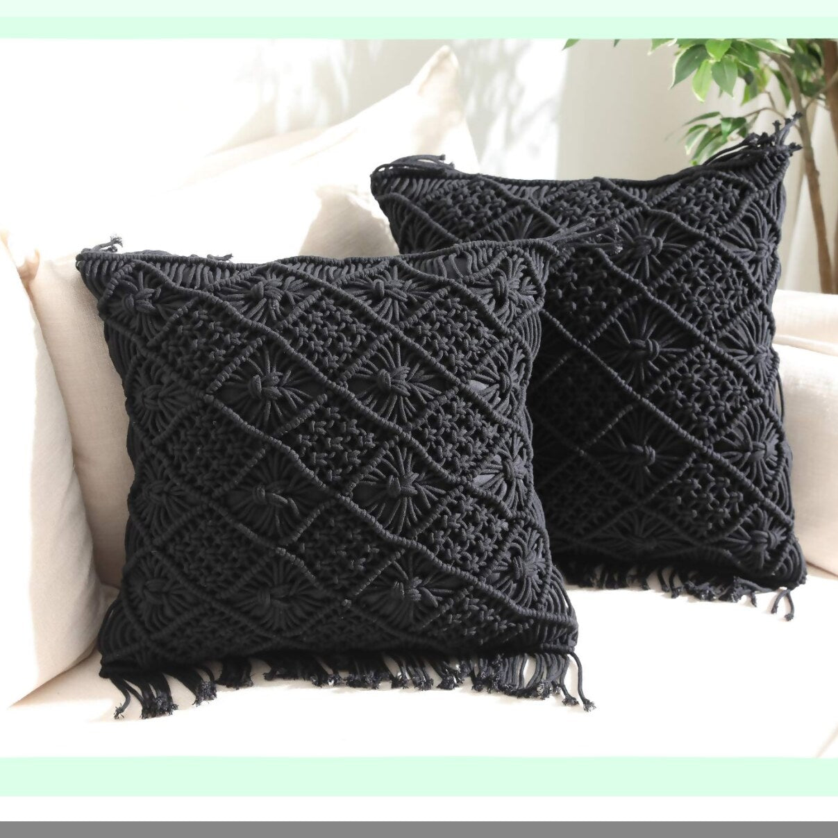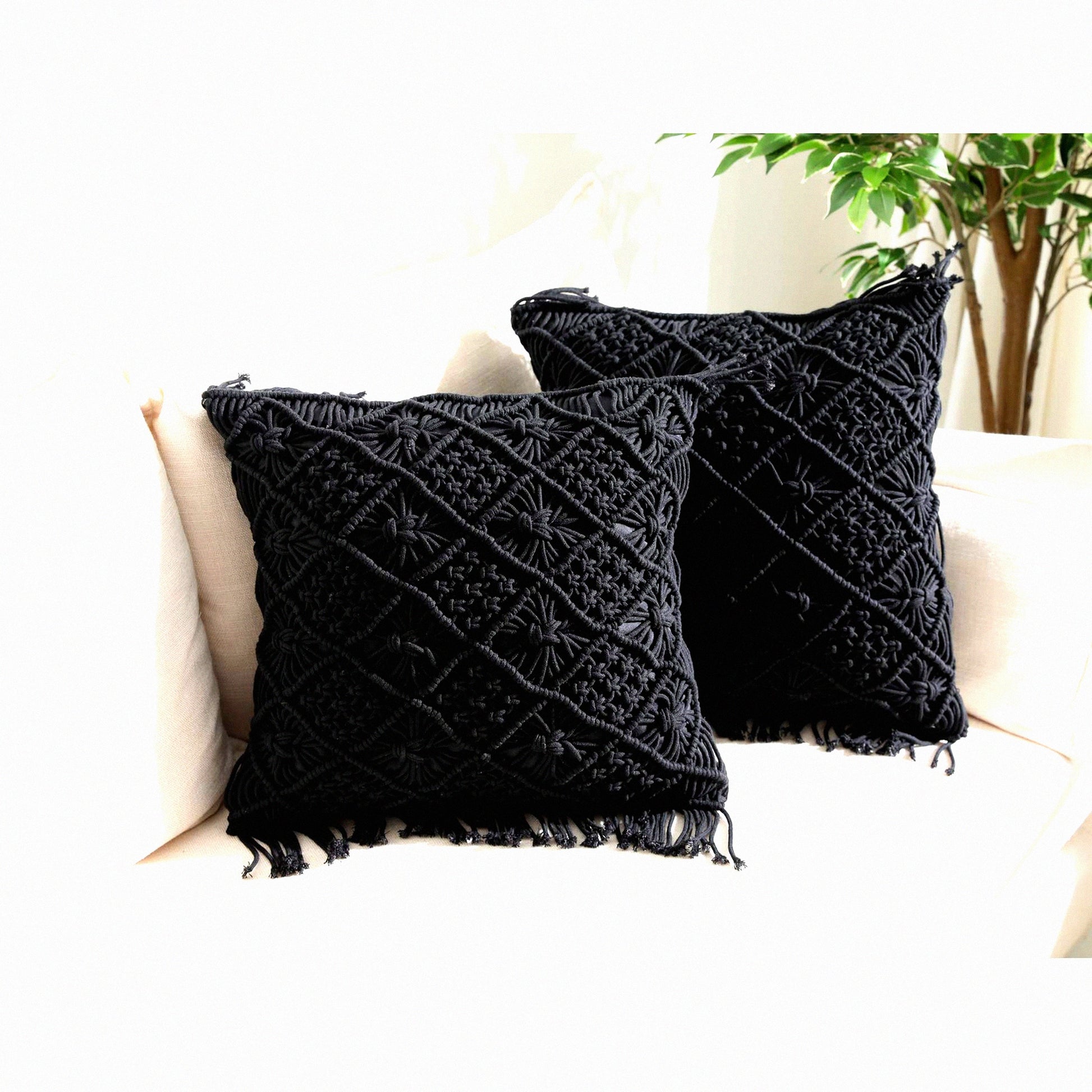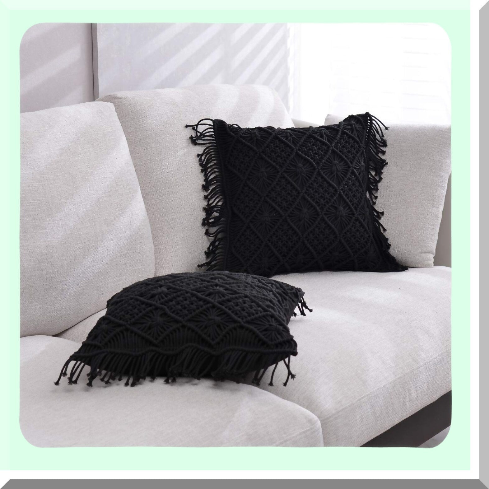 Boho Woven Tassel Pillowcase Set - Decorative Cushion Cover for Home Office & Outdoor Decoration - Soft Macrame Pillow Case - Black 17"x17"