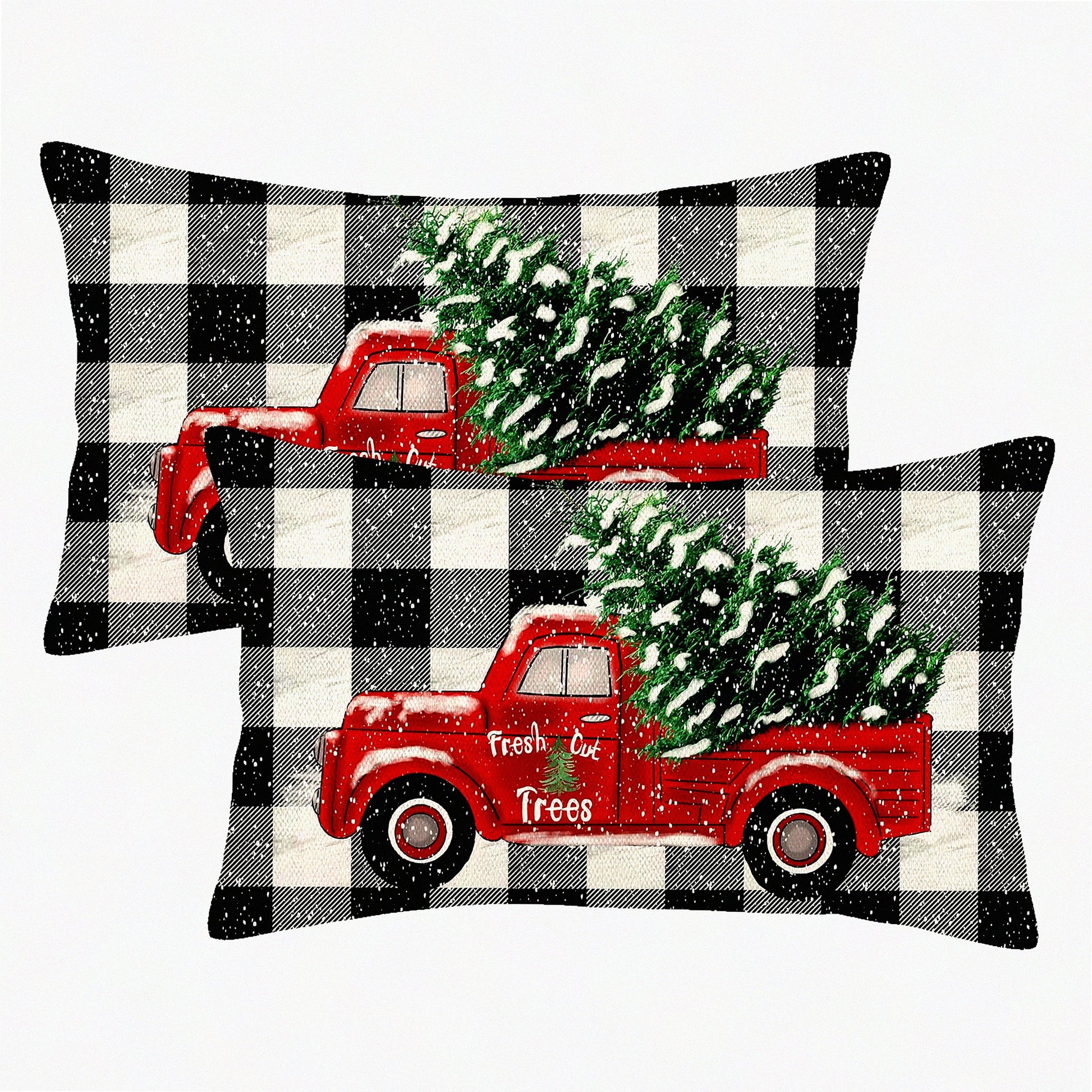 Winter Farmhouse Buffalo Plaid Pillow Covers Set - Decorative Throw Pillows for Home Couch Sofa - Tree Truck Design - 12x20 - Pack of 2