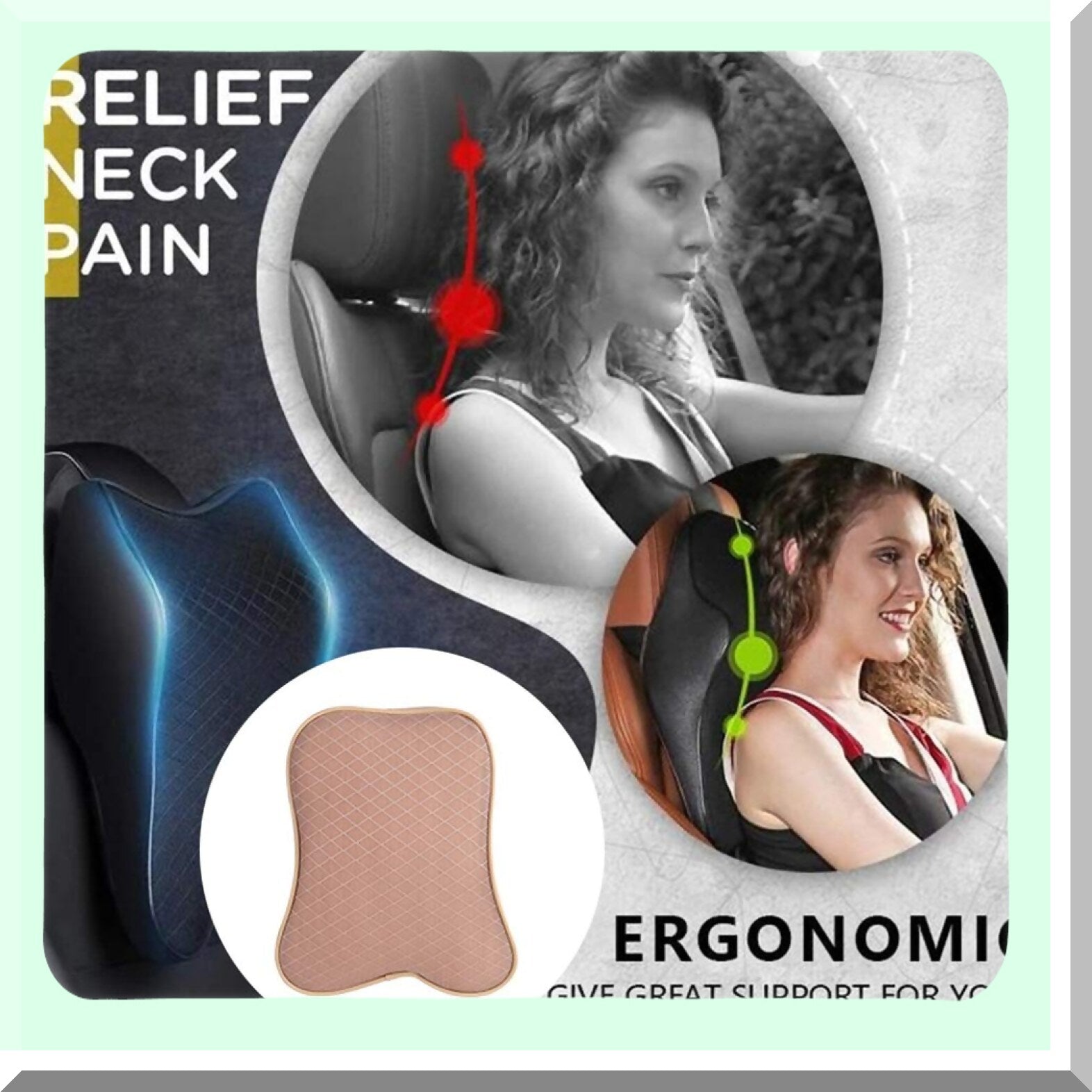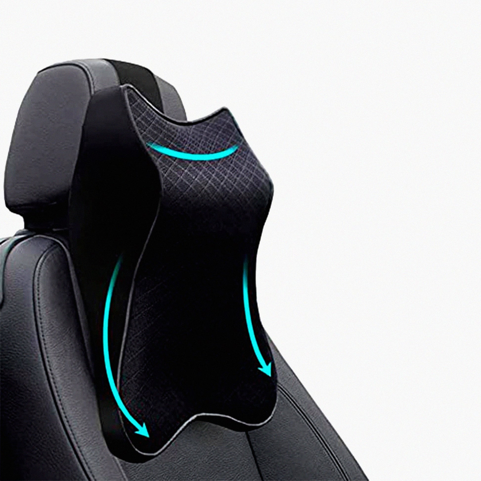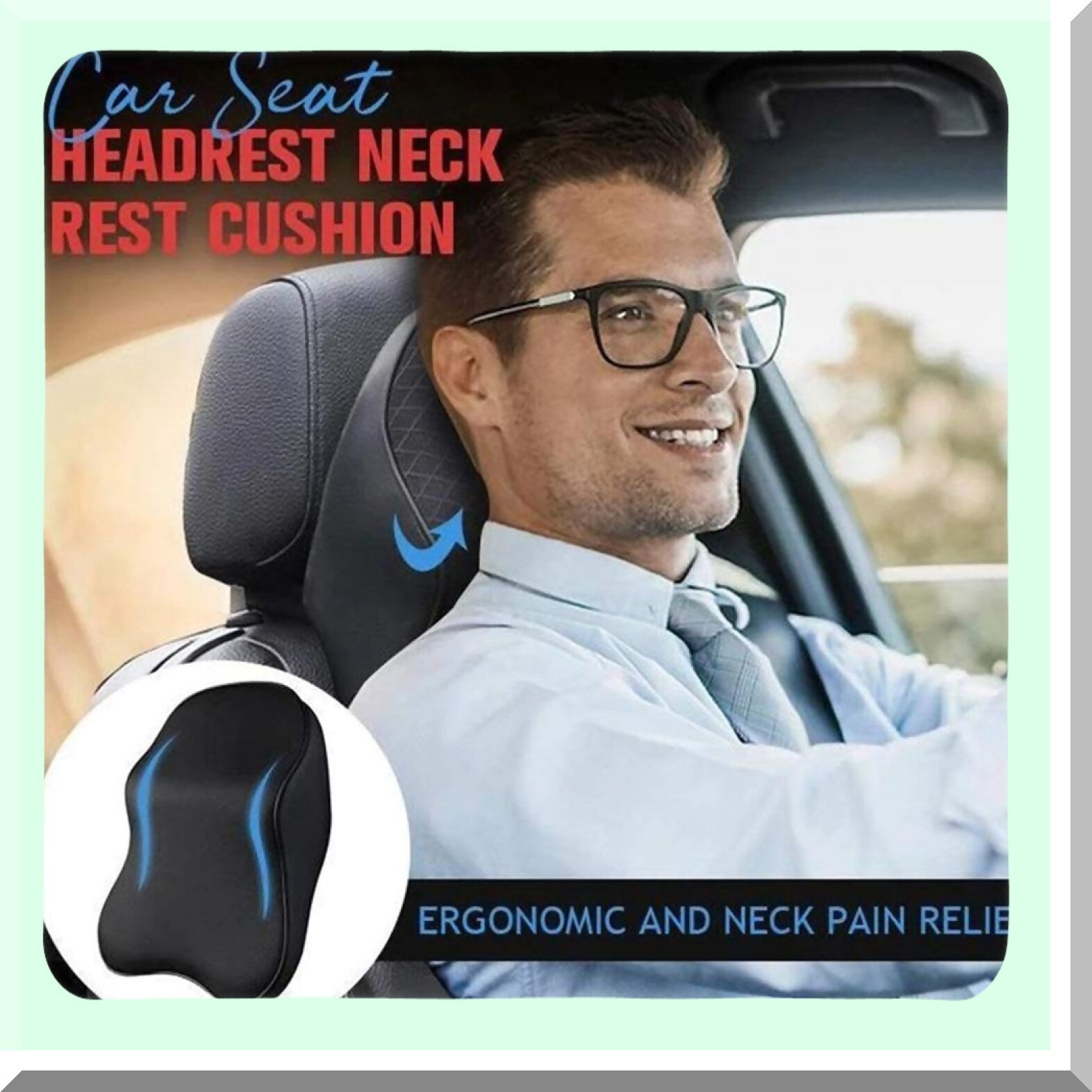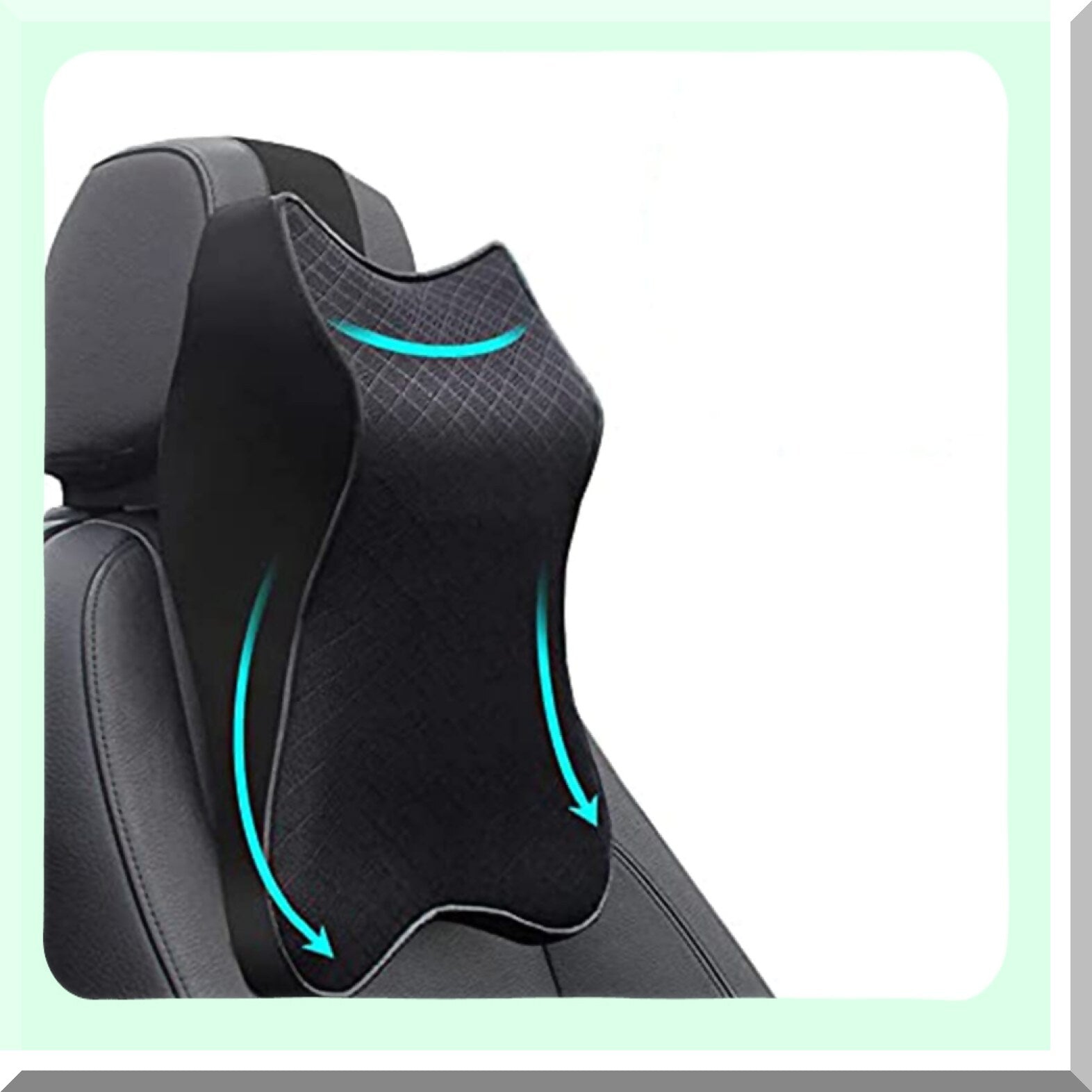MemoryFoam Comfort NeckRest - Ergonomic Car Seat Headrest Cushion for Neck Pain Relief. Breathable Cover, 14.17x11.8x3.9 in, Black.