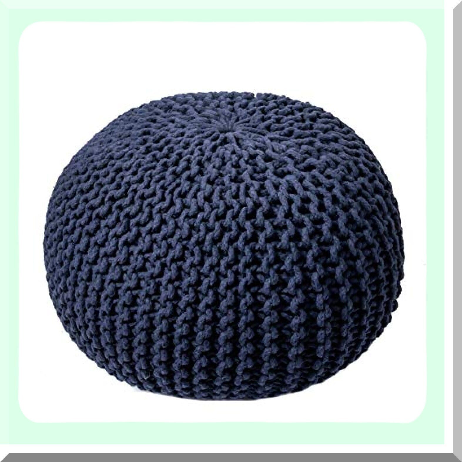 CozyKnit Round Ottoman Pouf - 14x20x20 Inch - Soft Knitted Footrest for Living Room, Bedroom, or Nursery - Stylish Home Decor Accent Piece