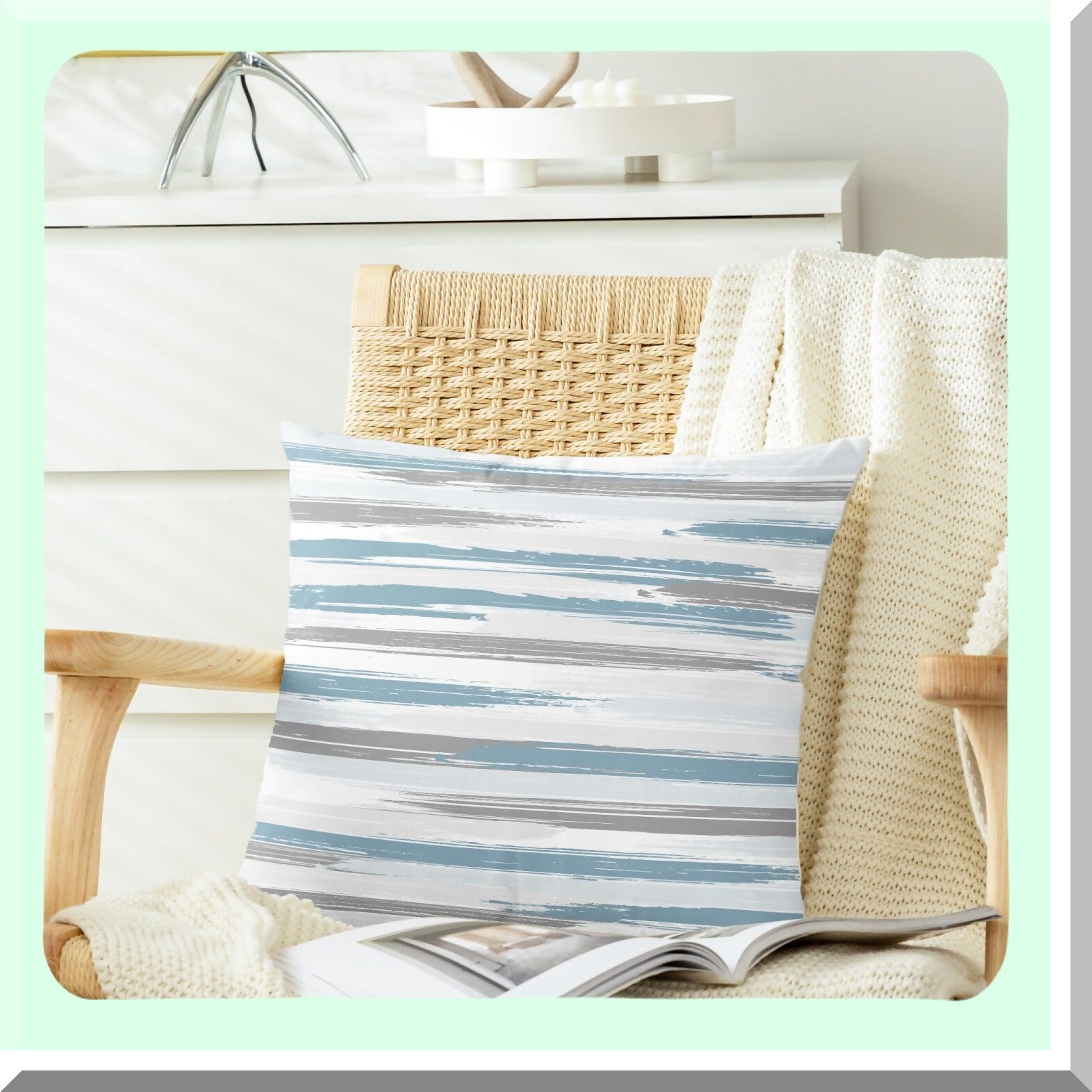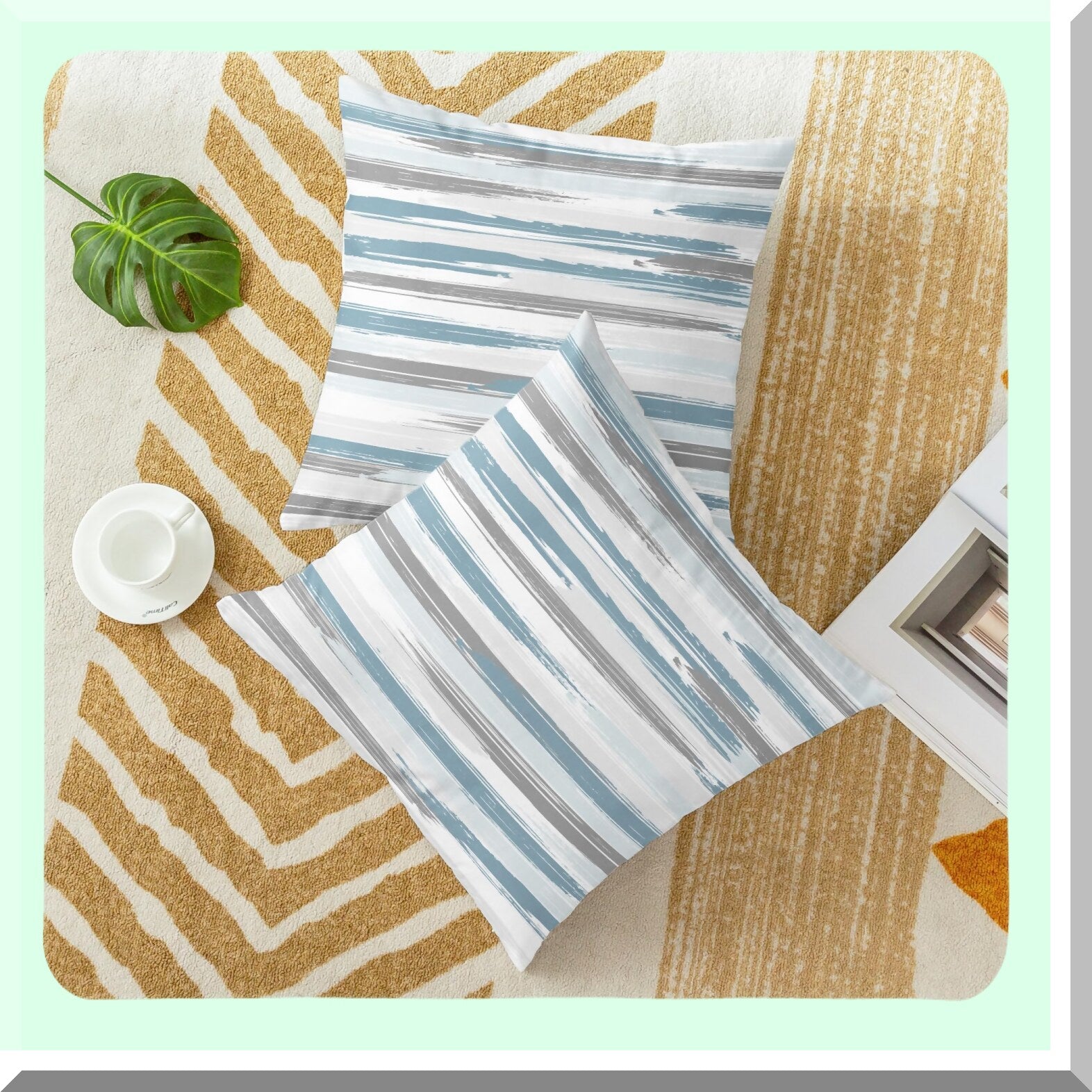 CozyFleece Rock Stone Geometric Texture Throw Pillow Cases - Pack of 2 Decorative Cushion Covers for Couch Bed Sofa - Farmhouse Decoration - 18 X 18 Inches - Smoke Blue Grey