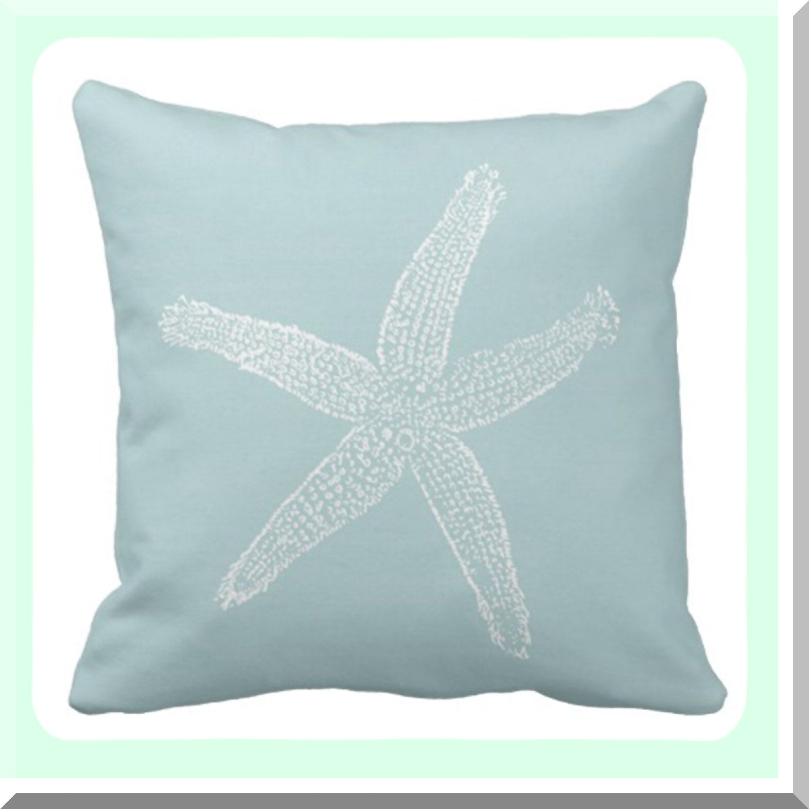 Seafoam Starfish Vintage Pillowcase - Decorative Green Fish Cover for Home Decor, Square 18 x 18 Inch Throw Pillow