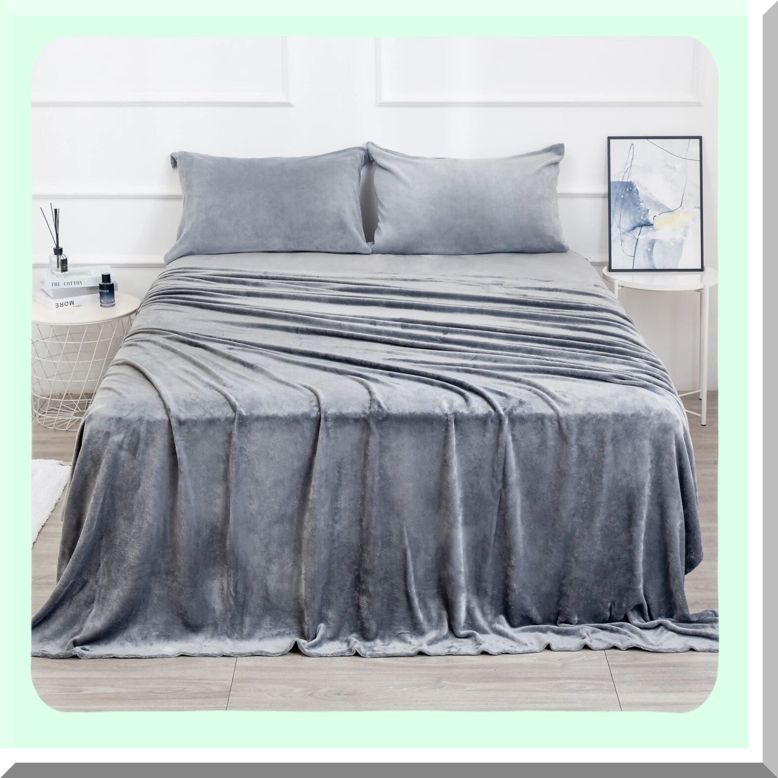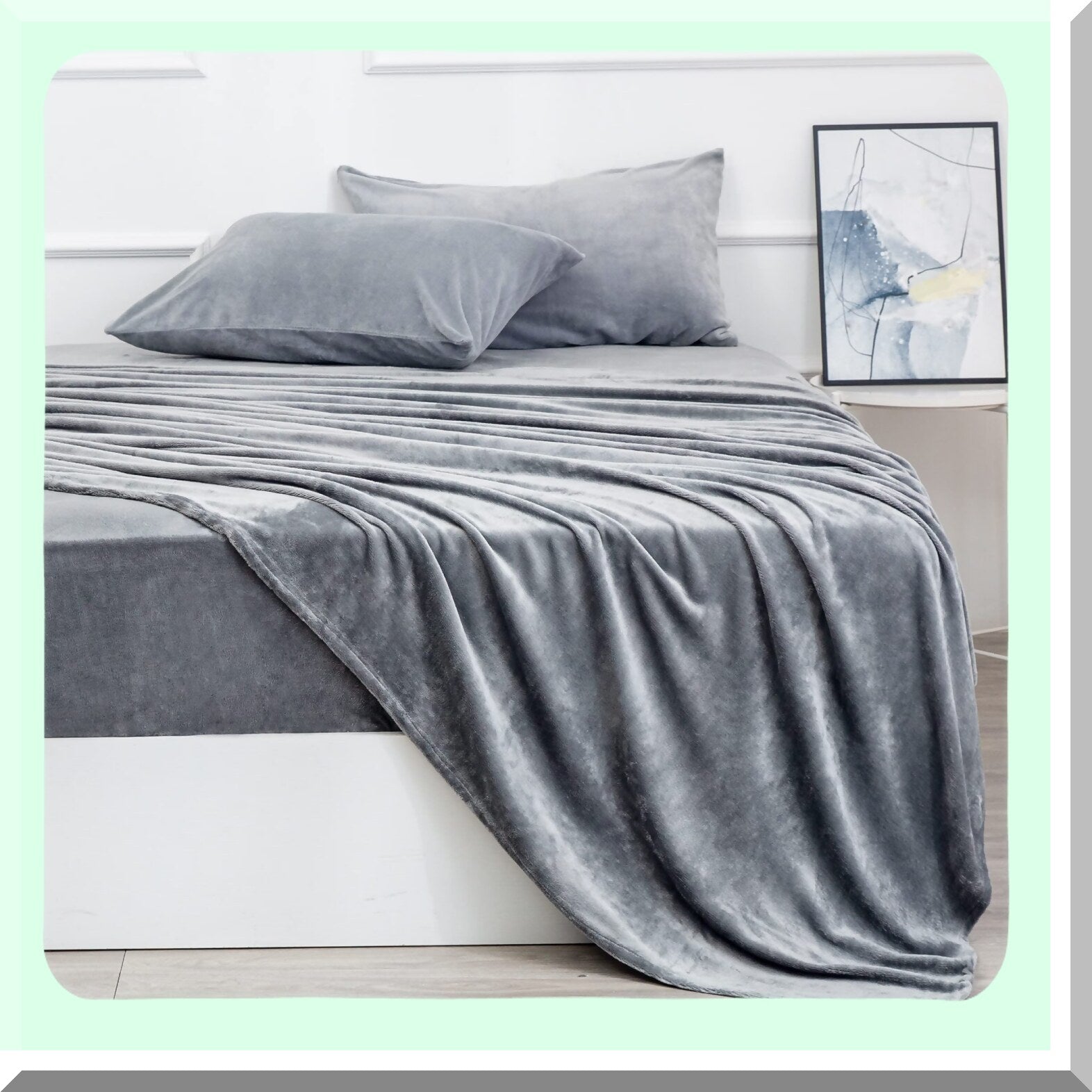 CozyPlush Twin Size Micro Fleece Bedding Set - Extra Soft Velvet Sheets & Pillowcase with Deep Pockets for All Seasons - Grey 3 Piece