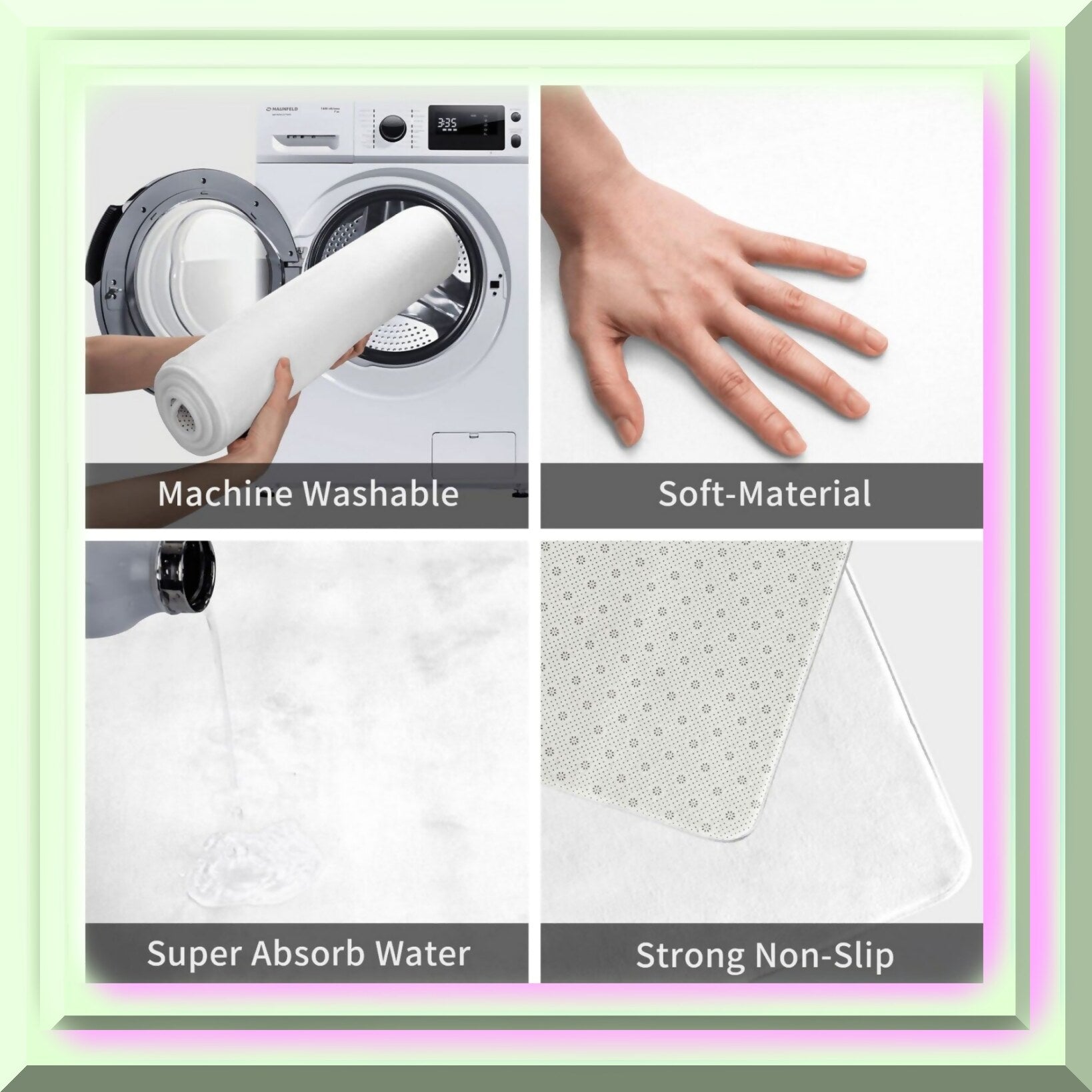 This bath mat features a unique abstract tree design with a blush pink, Christmas snowflake grey pattern, measuring 16"x24". The surface is made of non-woven fabric, providing a soft and comfortable feel underfoot. Its thick, lofty contact surface offers exceptional comfort, helping to relieve pressure and fatigue on your feet. The mat is treated with a special process that enhances water absorption and quick drying, keeping your bathroom floor clean and dry. A thin rubber backing ensures non-slip stability, preventing the mat from slipping during use. For optimal safety, ensure the lower surface is smooth, clean, and dry before placement. The design is created with advanced printing technology, resulting in a clear and exquisite pattern that complements various decor styles. Easy to clean and maintain, this multifunctional bath rug combines practicality with aesthetic appeal, making it a versatile addition to your bathroom.