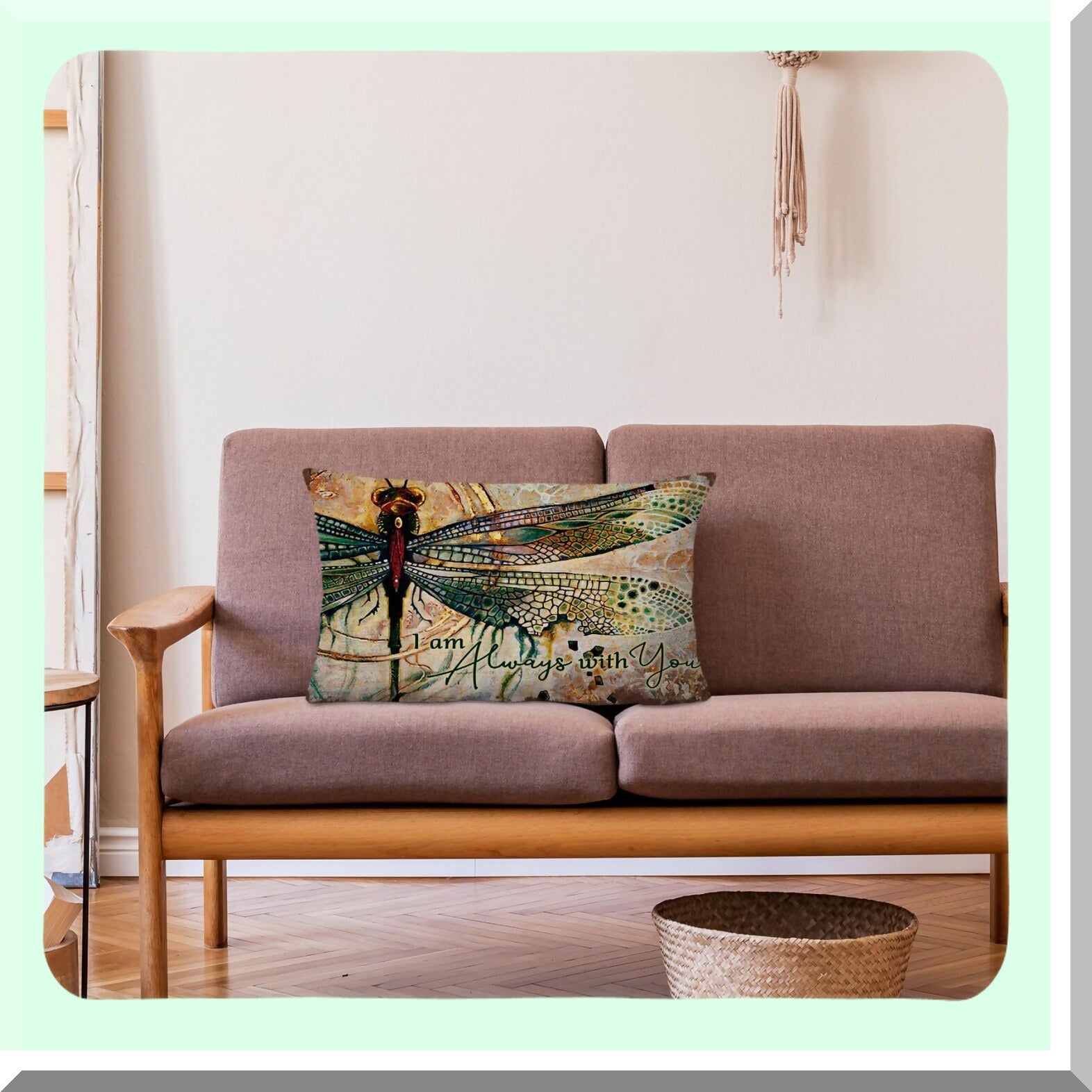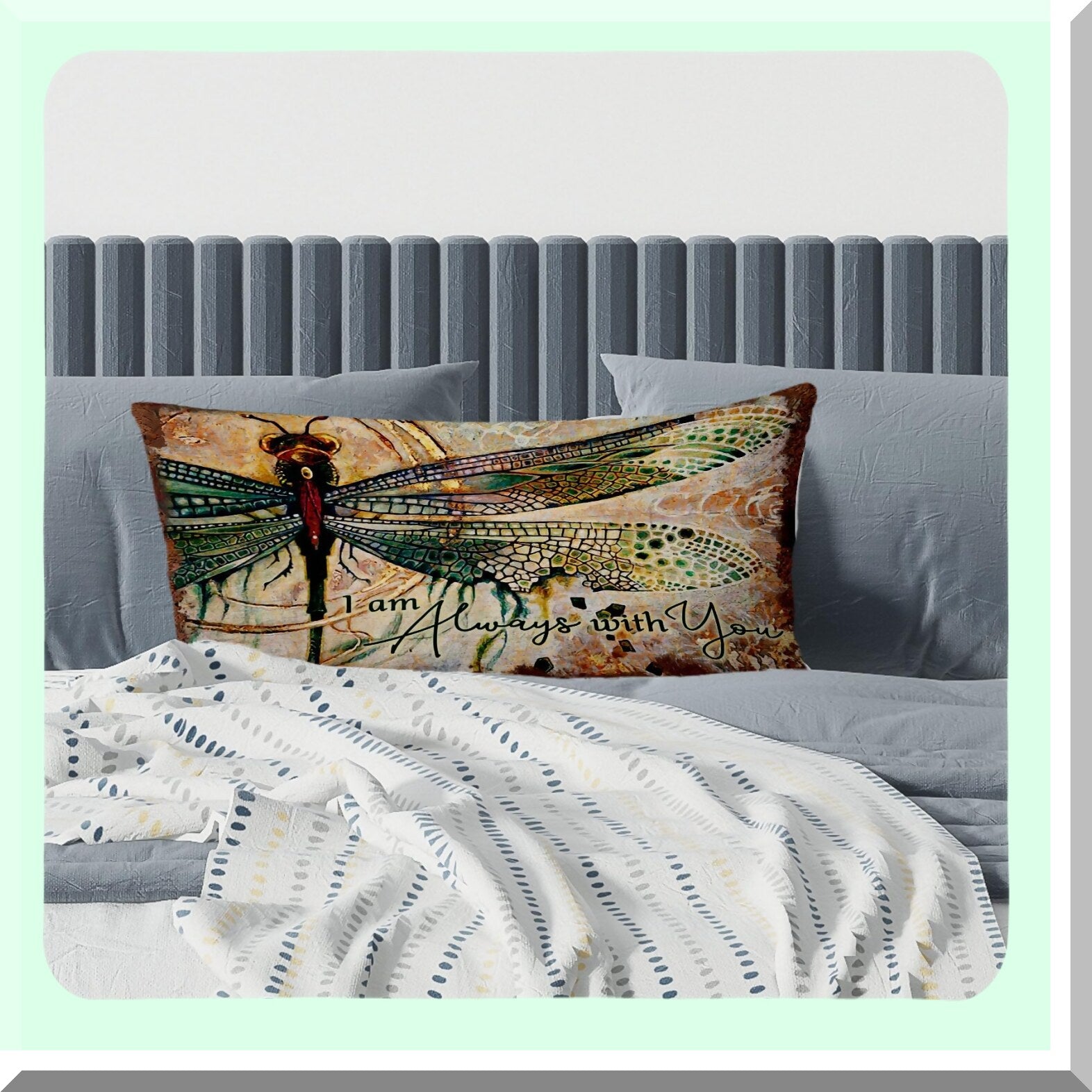 Dragonfly Blessings Throw Pillow - Inspirational Christian Decor - Memorial Gift for Her - Always with You Cushion Cover - 12x20 Inch