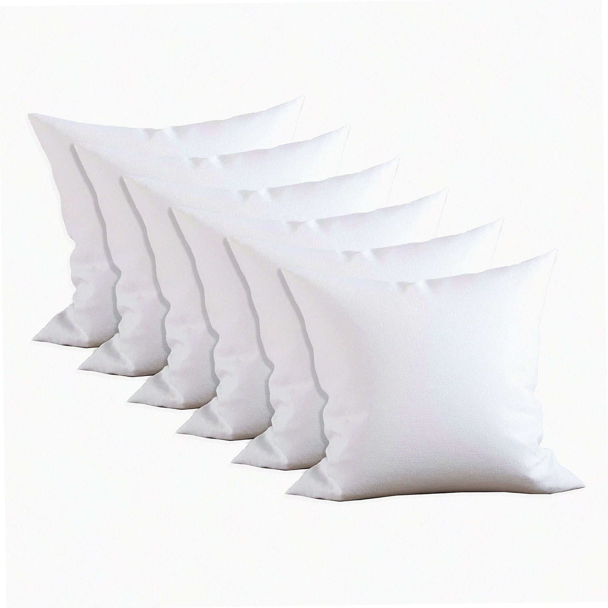 The 6-pack pillow inserts feature a poly-cotton shell and siliconized fiber filling, providing a comfortable and supportive feel. Each pillow measures 20 x 20 inches, making them suitable for various decorative and functional uses. The white color ensures they blend seamlessly with different pillow covers and home decor styles. The pack of six offers convenience and value, allowing users to easily refresh multiple pillows at once. These inserts are designed to maintain their shape and fluffiness over time, enhancing the longevity and appearance of pillows.