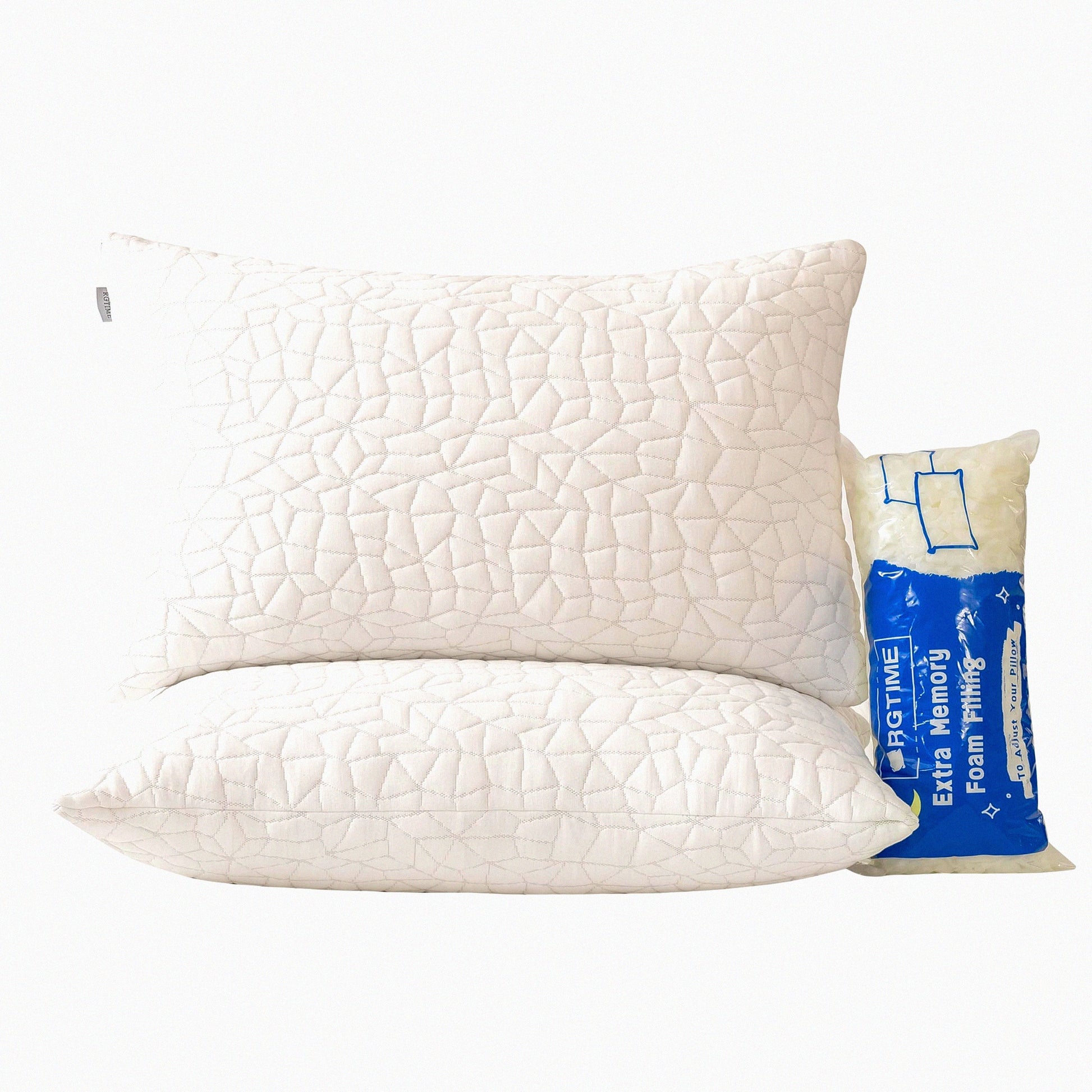 CoolDream Adjustable Memory Foam Pillows - Queen Size Set of 2 for Side Back Stomach Sleepers. Comfy Cooling Pillows with Washable Cover.