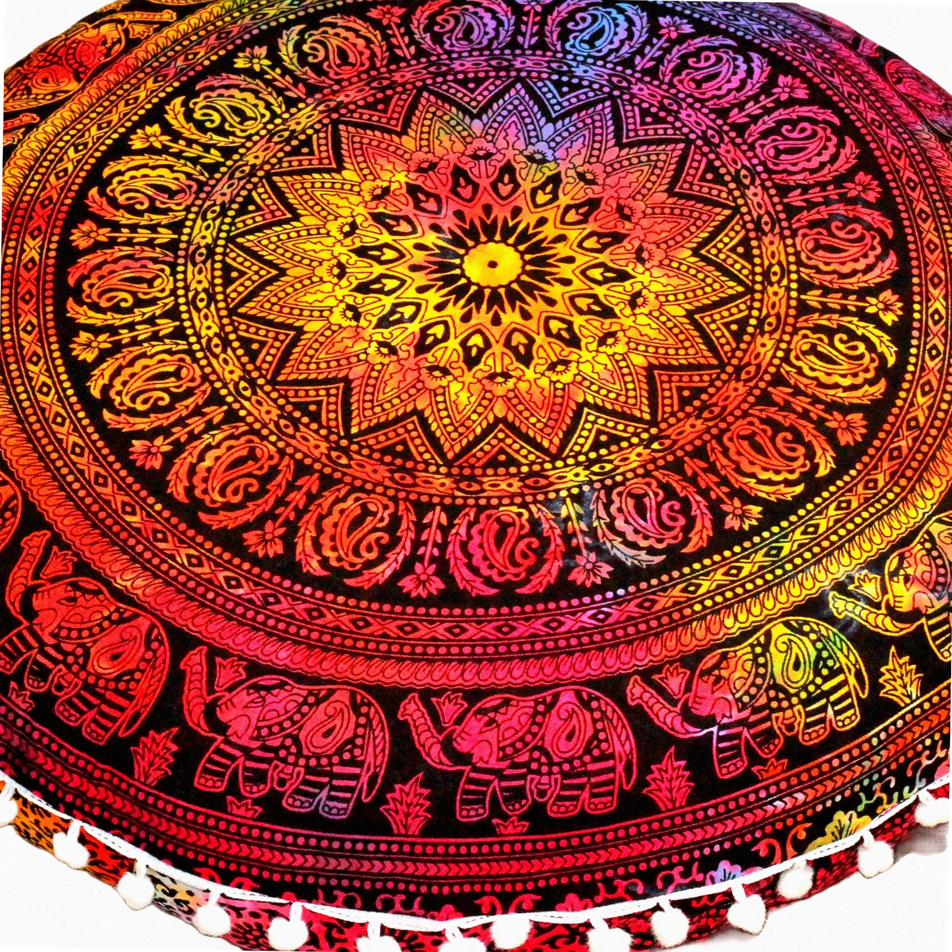 Round Zen Floor Cushion Ottoman Cover - Meditation Seating Pouf Pillow Case for Large Round Seat, Throw Cover for Room Furniture - Multi 4 Fool 32"