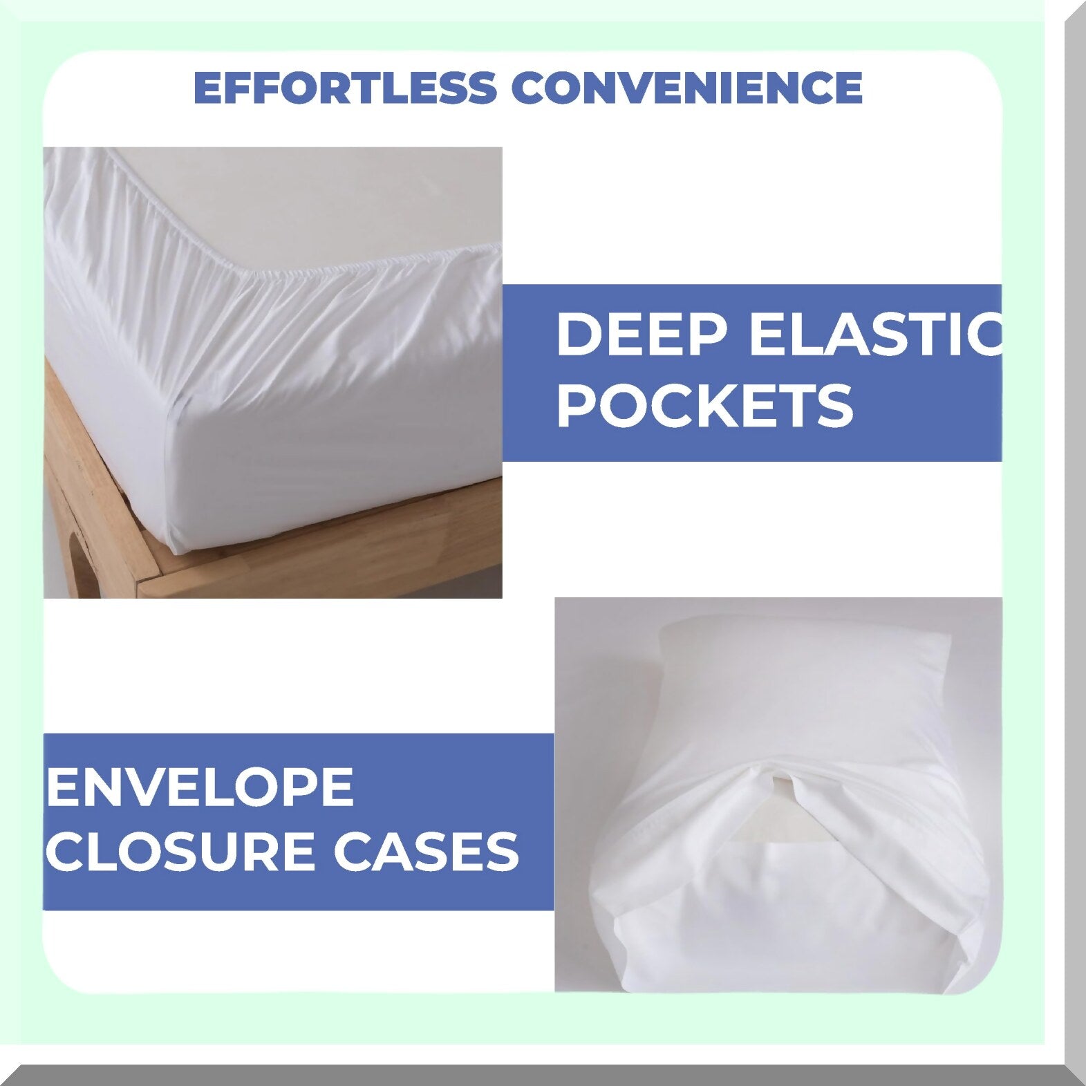 CoolMax Comfort 4-Piece Bedding Set - White - Cooling, Breathable, Soft - 100% Cotton - Fitted Sheet, Flat Sheet, Pillowcase - King/Queen/Full/Twin
