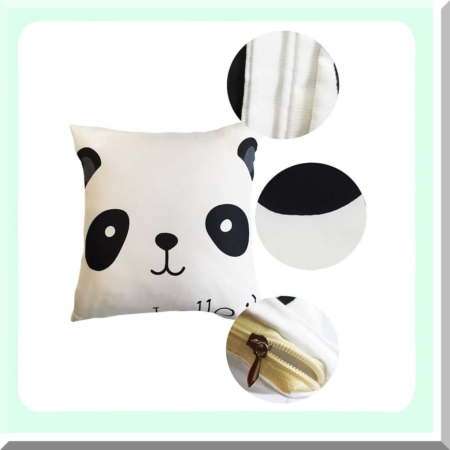 Panda Bliss Pillow Covers - Set of 2 | Cute Panda Face Decorative Cushion Cases for Sofa & Bedroom | 18x18" Seamless Hello Panda Home Decor