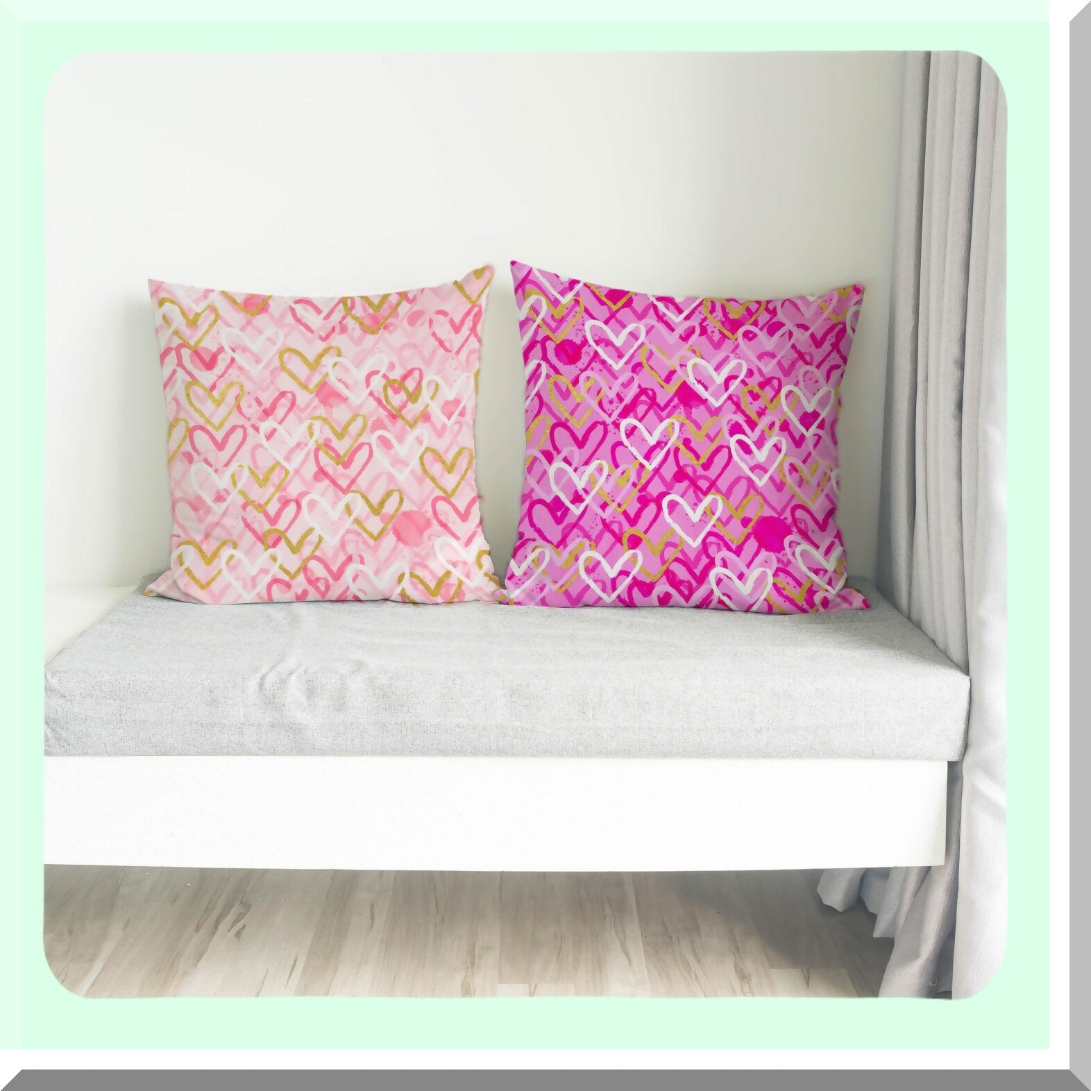 Pink Hearts Girly Throw Pillow Covers - Set of 2, Preppy Trendy Decor for Home, Bedroom, Living Room, College Dorm & Bachelorette Party. Ideal Gifts for Women & Teen Girls, 18x18 Inches.