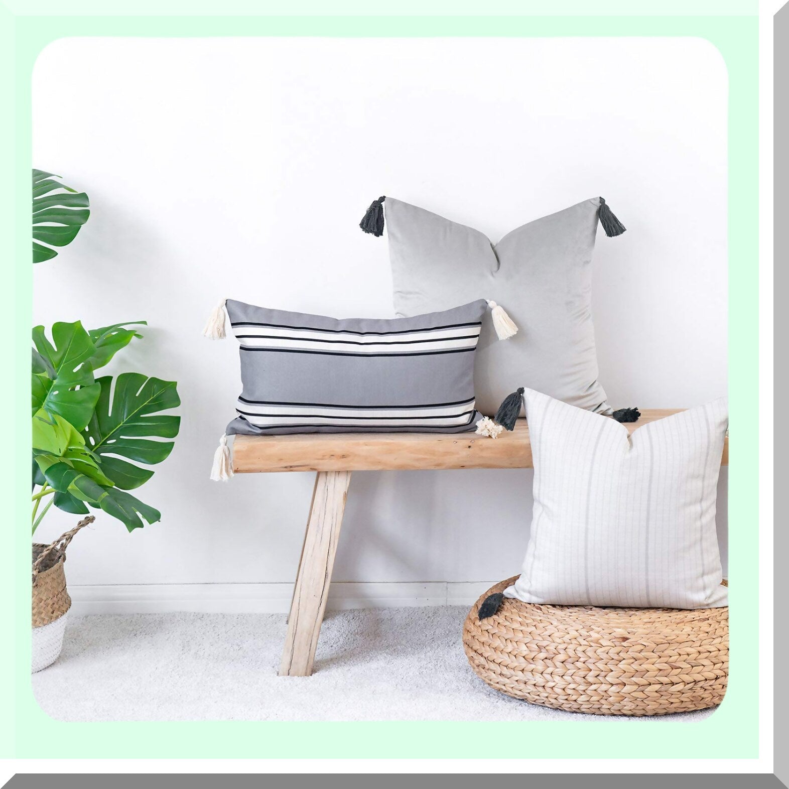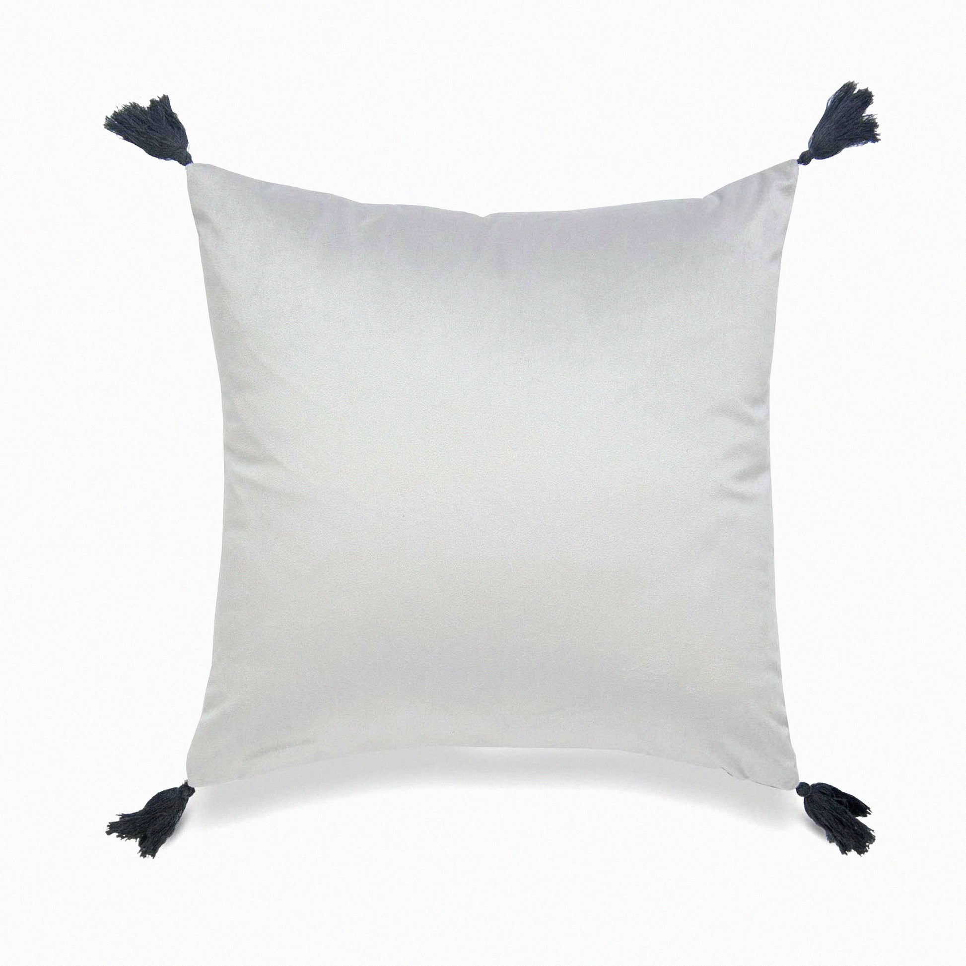This throw pillow cover, sold individually, measures 20"x20" (50x50cm) and features the same pattern on both sides. It includes an invisible zipper at the bottom for a seamless appearance. Made of velvet, it offers a timeless design with a beautiful gray hue and simple plain look, enhanced by playful corner contrast tels for added visual interest.