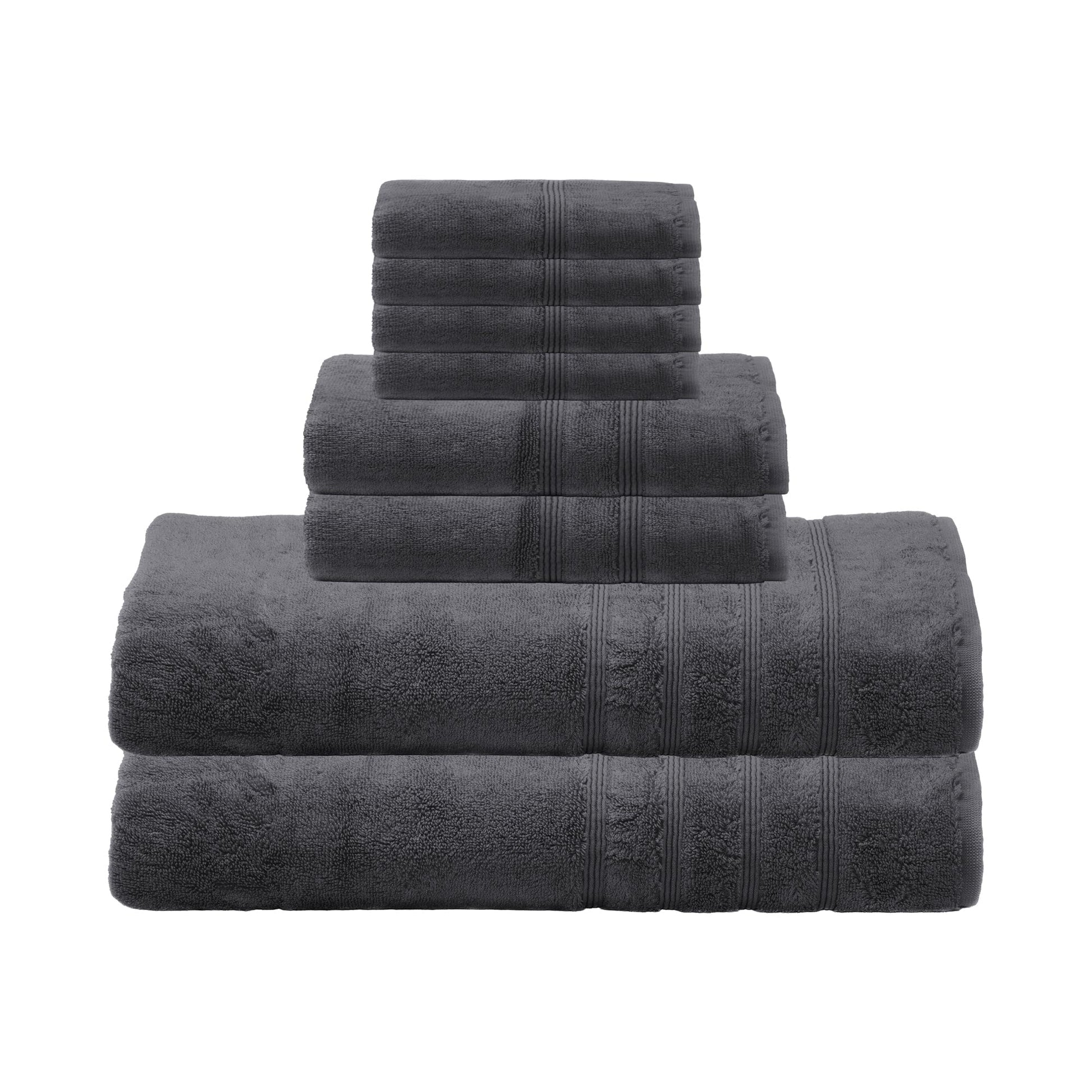 700 GSM Bamboo 8pc Extra Large Bathroom Set, Charcoal Grey, 2 Bath Towels Sheets 35X70 2 Hand Towels 16X30 4 Face Washcloths 13X13, Turkish Towel Sets, Quick Dry, Dark Gray