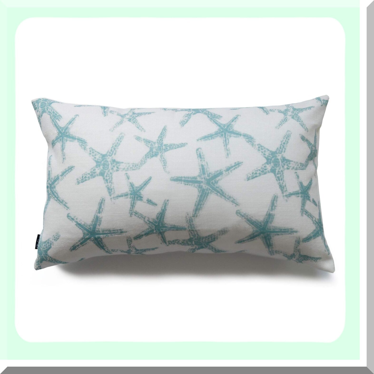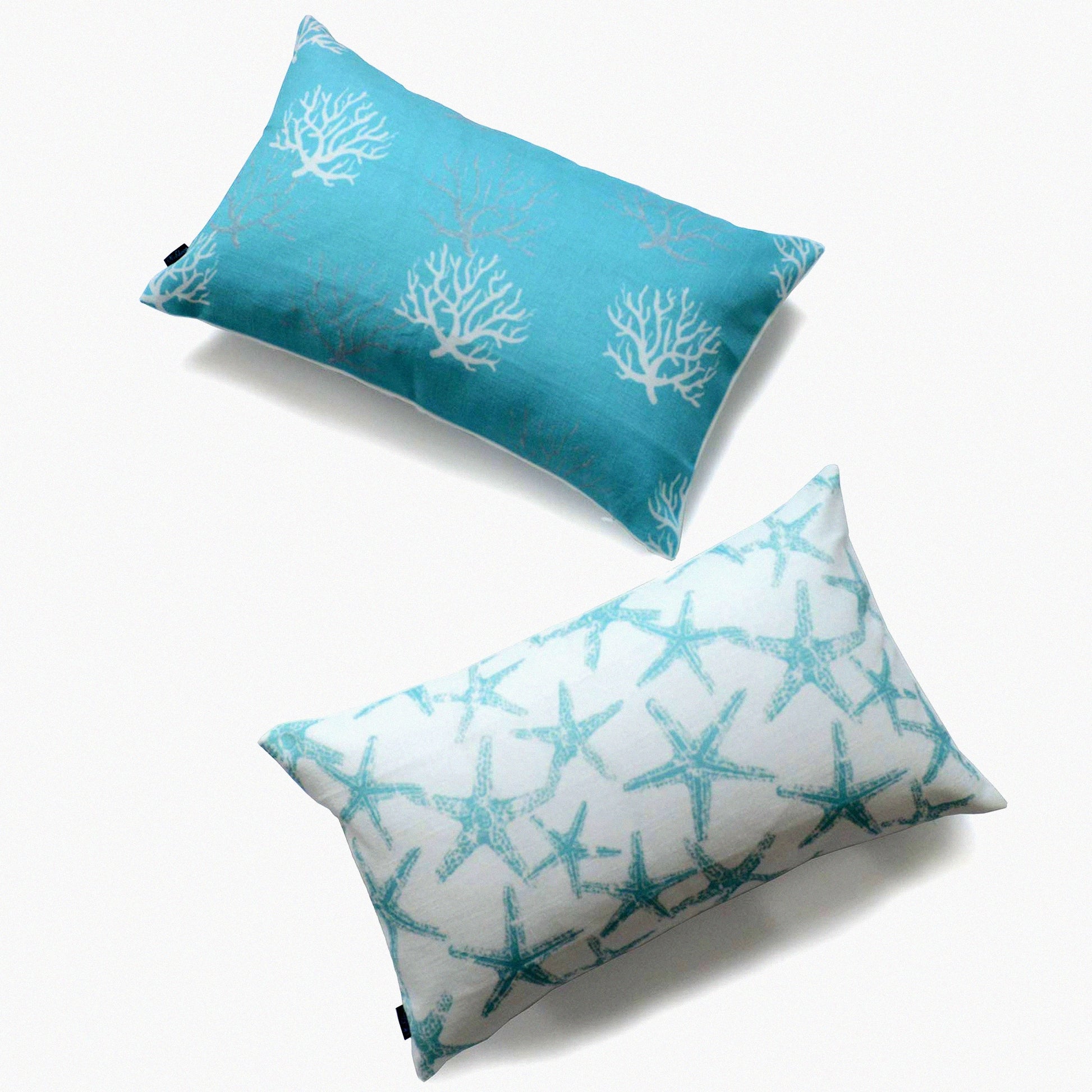 Coastal Aqua Coral Starfish Pillowcase Set - Nautical Indoor Outdoor Cushion Cover 12x20 Inches - Modern Decorative Throw Pillow Case 2Pcs